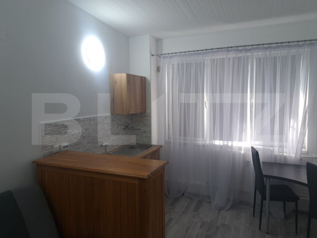 Blitz oferă spre închiriere garsonieră, 22 m², situată în cartierul Dâmbul Rotund, zona Lombului, Cluj-Napoca. Garsoniera este modernă, recent amenajată, având gresie și parchet noi, fiind ideală pentru o persoană sau un cuplu care își dorește un spațiu practic și bine organizat. Locuința beneficiază de centrală pe imobil și este dotată cu plită electrică și frigider nou. La cerere, se poate pune airfryer sau cuptor cu microunde, în funcție de preferințele chiriașului. Un avantaj important îl reprezintă posibilitatea de parcare în spatele blocului, existând locuri special destinate locatarilor, ceea ce oferă un plus de confort. Garsoniera este situată într-o zonă accesibilă, în apropiere de magazine precum HomeGarden, Lidl și Mega Image, oferind acces rapid la facilități pentru viața de zi cu zi. Proprietatea este ideală pentru cei care caută o locuință modernă, compactă și bine poziționată, într-o zonă liniștită a orașului. Pentru mai multe detalii sau programarea unei vizionări, vă invităm să ne contactați. Cod ofertă / ID BLITZ: P170024 Id intern: P170024