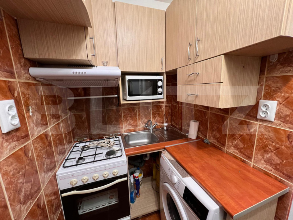 Blitz oferă spre închiriere garsonieră, 25 m², 300 euro, zona Expo Transilvania – Mărăști, Cluj-Napoca Garsoniera are o suprafață de 25 m² și se închiriază complet mobilată și utilată, fiind potrivită pentru o persoană sau un cuplu. Locuința este amenajată practic și dispune de pat nou, precum și de spații de depozitare bine organizate. Bucătăria este dotată cu frigider, aragaz, hotă, cuptor cu microunde și mașină de spălat rufe, oferind toate facilitățile necesare pentru confortul zilnic. Imobilul beneficiază de centrală pe imobil, iar încălzirea se realizează prin calorifere, asigurând un ambient plăcut pe timpul sezonului rece. Zona Expo Transilvania este una bine conectată, cu acces facil către mijloace de transport, magazine și alte puncte de interes, fiind ideală pentru cei care își doresc o locuință accesibilă și bine poziționată. Prețul de închiriere este de 300 euro/lună. Pentru mai multe detalii sau programarea unei vizionări, vă invităm să ne contactați. Cod ofertă / ID BLITZ: P167634 Id intern: P167634