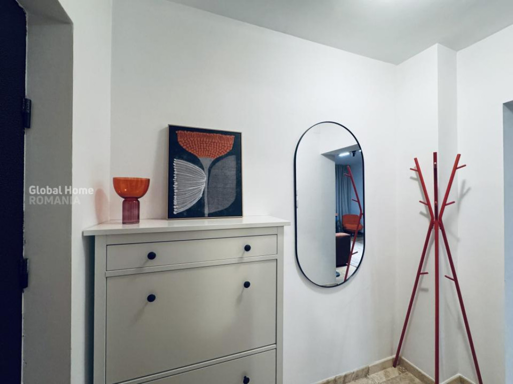 Se oferă spre închiriere o garsonieră elegantă, situată într-una dintre cele mai căutate zone centrale ale Bucureștiului – zona Unirii, pe strada Parfumului, la doar câteva minute de Piața Unirii și de Biblioteca Națională a României. Locuința are o suprafață generoasă de 40 mp, este decomandată și beneficiază de o amenajare complet nouă, realizată după un concept de design modern, cu atenție la detalii și funcționalitate. Living / zonă de zi Camera principală impresionează prin echilibrul dintre estetică și utilitate. Elementul central este dressingul spațios, atent compartimentat pentru a oferi spații separate și generoase de depozitare, inclusiv o zonă dedicată obiectelor pe care dorești să le păstrezi discret organizate. Zona de relaxare include: • canapea extensibilă confortabilă, într-o nuanță elegantă de cărămiziu • măsuță de cafea care completează armonios spațiul • comodă modernă din MDF gri, completată de module decorative tip cub, ideale pentru cărți sau obiecte personale • fotoliu accent, care definește colțul de relaxare Atmosfera caldă este dată de parchetul din lemn natural, iar decorul este completat de perdele, draperii și covor, integrate cromatic în designul interior. Sistemul de iluminat este gândit pentru mai multe tipuri de atmosferă: • șină de tavan cu 5 spoturi LED • lampadar pentru lumină ambientală • veioză decorativă pentru zona de relaxare. Bucătărie Bucătăria este amenajată într-un stil modern și natural, finisată cu piatră naturală – travertin, care oferă o atmosferă caldă și elegantă. Dotări: • mobilier în tonuri deschise • blat rezistent cu aspect de lemn • chiuvetă Franke • plită din sticlă • mașină de spălat vase • frigider încorporat Există și zonă de dining, ideală pentru mese relaxate sau pentru a primi prieteni. Baie Baia păstrează aceeași linie elegantă prin folosirea travertinului, oferind un design simplu, dar foarte funcțional. Dispune de duș tip walk-in, completat de paravan din sticlă. Hol Holul este spațiul care leagă armonios toate zonele locuinței și oferă soluții inteligente de organizare: • pantofar generos • oglindă mare • cuier decorativ tip copac, cu rol atât practic, cât și estetic. Localizare și proximități Proprietatea beneficiază de o poziționare excelentă în centrul orașului, cu acces rapid către: • Piața Unirii – metrou, centre comerciale și restaurante • Biblioteca Națională a României • Centrul Vechi al Bucureștiului • mijloace de transport în comun • supermarketuri, cafenele și zone de promenadă. Avantaje • locație centrală premium • amenajare complet nouă • design modern și funcțional • spații generoase de depozitare • acces rapid la metrou și zone de interes. ___ Global Home Romania, este o firmă în schimbare de jocuri pe piață imobiliară din România ce se afla intr-o expansiune rapidă. Modelul personalizat avand la baza tehnologia digitala, inteligenta artificala și interacțiune umană alături de colaboratorii firmei, inspiră constant încredere. Având o abordare de marketing profesională și îndrăzneță a ridicat atenția asupra modului în care oamenii se gândesc la imobiliare in Romania. Global Home Romania, companie imobiliara infiintata in 2020 ce continuă să se dezvolte cu succes în domeniu, reușind să atraga constant parteneri și colaboratori de încredere. Cu sediul în București, Global Home Romania, a apărut ca o firmă imobiliară de încredere ce își propune constant să livreze servicii de calitate. Misiunea Global Home Romania în piața imobiliară, este aceea de a stabili un raport solid bazat pe încredere și profesionalism între reprezentantii nostri imobiliari bine informati impreuna cu toti clientii si colaboratorii companiei. Id intern: P17099