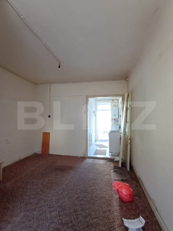 Blitz ofera la vanzare o garsoniera, la casa, in centrul orasului. Aceasta este situata la parter si face parte dintr-un imobil cu 4 locuinte, fiecare cu alee privata care face parte din proprietate. Suprafata utila este de 22 mp, compartimentarea se prezinta astfel: hol, 1 camera cu bucatarie open space, 1 baie cu geam. Garsoniera necesita renovare. Este dotata cu centrala termica si calorifere. Acoperisul este din tabla si exista posibilitatea de mansardare. La intrare exista o terasa mica, acoperita. De mentionat ca in proximiate se afla magazine, scoli, farmacii, fiind situata chiar in centrul orasului. Pentru mai multe detalii programeaza o vizionare! Cod ofertă / ID BLITZ: P158567 Id intern: P158567