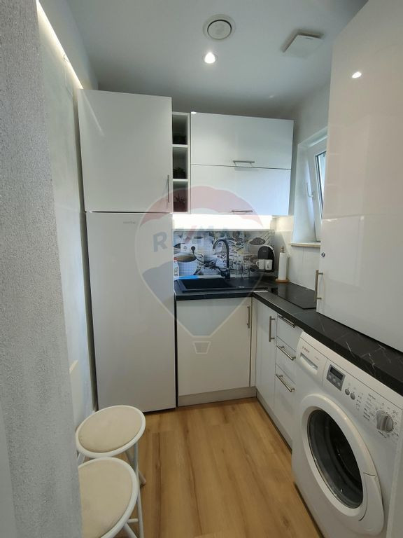 Garsonieră complet renovată în Terezian. Vă propunem spre vânzare o garsonieră cochetă, situată la demisol, într-un imobil bine întreținut, în zona Terezian, una dintre cele mai căutate zone din Sibiu, cu spațiu verde și aproape de toate utilitățile. Aceasta este compartimentată eficient și se vinde complet mobilată și utilată. Locuința a fost renovată integral, de la instalațiile sanitare și electrice până la finisaje și mobilier. Bucătăria este separată, are geam pentru lumină naturală și ventilație, iar baia este modernă și bine întreținută. Spațiul este luminos și primitor, datorită compartimentării inteligente și finisajelor în culori deschise. Avantaje: Renovare completă (instalații noi, mobilă nouă) Bucătărie cu geam Poziționare într-un imobil solid, la demisol, dar bine luminat Zonă liniștită cu spațiu verde și acces rapid la toate utilitățile Ideală pentru investiție sau locuință personală.
