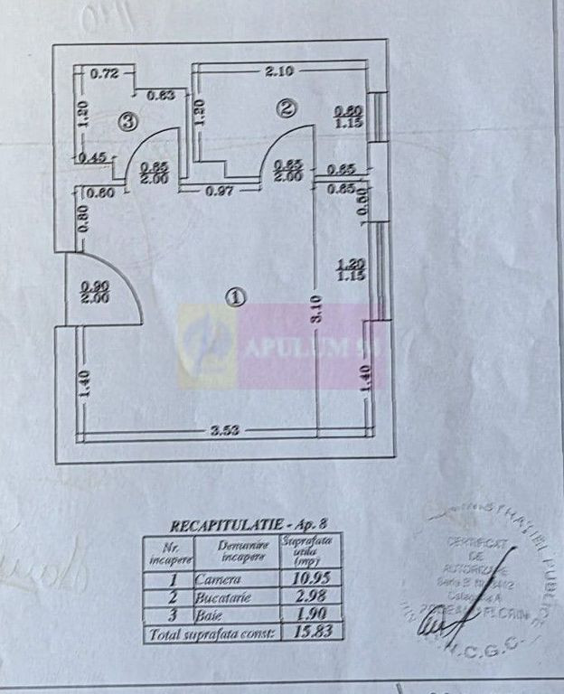 Garsoniera de vanzare in Campina, et. 1 – 15,83 mp