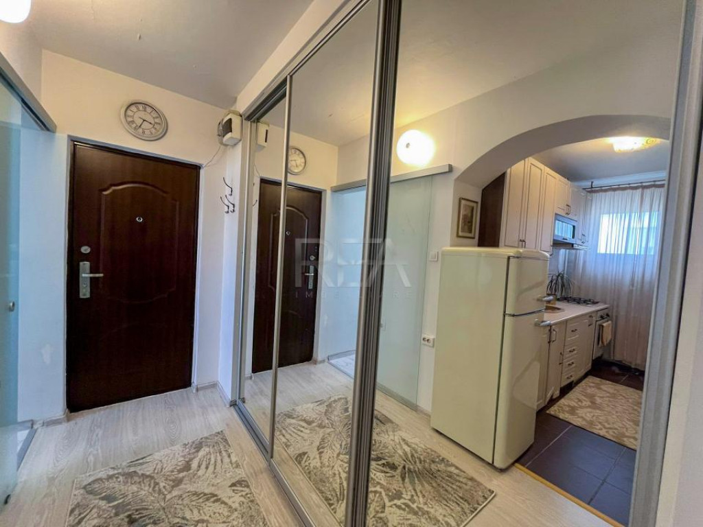 Intrând în această garsonieră, primul lucru pe care îl simți este liniștea. O liniște care îți oferă spațiu mental și claritate, nu doar absența zgomotului. Cu o suprafață utilă de 31,04 mp și o suprafață totală de 33,59 mp (inclusiv balcon de 2,55 mp), locuința este inteligent compartimentată, oferind mai mult decât ai spune la prima vedere. Garsoniera este decomandată, ceea ce înseamnă că fiecare spațiu are rolul lui bine definit: – cameră generoasă de 18 mp, luminoasă și aerisită – bucătărie separată de 4,64 mp, practică și eficientă – baie de 3,68 mp – hol de acces de 3,08 mp, completat de spații de depozitare (camară și debara) Balconul adaugă acel plus de lumină și deschidere, transformând spațiul într-un loc în care chiar îți vine să stai. Designul este elementul care diferențiază această proprietate. Nu este o amenajare standard, ci una care transmite echilibru, bun gust și grijă pentru detalii. Totul este coerent, curat și bine gândit. Viața aici înseamnă dimineți liniștite, lumină naturală și un spațiu care nu te apasă, ci te susține. Este ideal pentru un student sau o persoană activă care își dorește un loc ordonat, estetic și funcțional. Nu este pentru cineva care caută agitație sau nu acordă importanță mediului în care trăiește. Dar pentru cineva care apreciază calmul, lumina și un spațiu bine definit, poate fi exact ce caută. P10945 Id intern: P10945
