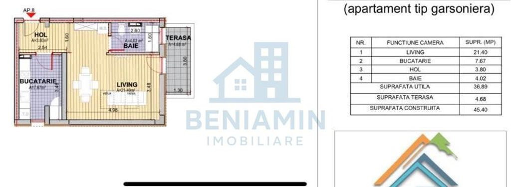 ID1521 Va oferim spre vanzare o garsoniera moderna si bine compartimentata, situata in Sanpetru, Brasov, in ansamblul rezidential Roca Village. Locuinta are o suprafata utila de 37 mp si este compusa din dormitor, hol, bucatarie inchisa, baie si balcon spatios de 4,7 mp. Garsoniera este situata la mansarda unui imobil cu regim de inaltime P+1+M, intr-o zona linistita si in plina dezvoltare, perfecta atat pentru locuit, cat si pentru investitie. Loc de parcare privat inclus in pret. Avantaje: ansamblu rezidential modern compartimentare practica bucatarie inchisa balcon 4,7 mp loc de parcare inclus zona linistita, aproape de Brasov Pentru mai multe detalii sau programarea unei vizionari, nu ezitati sa ne contactati.