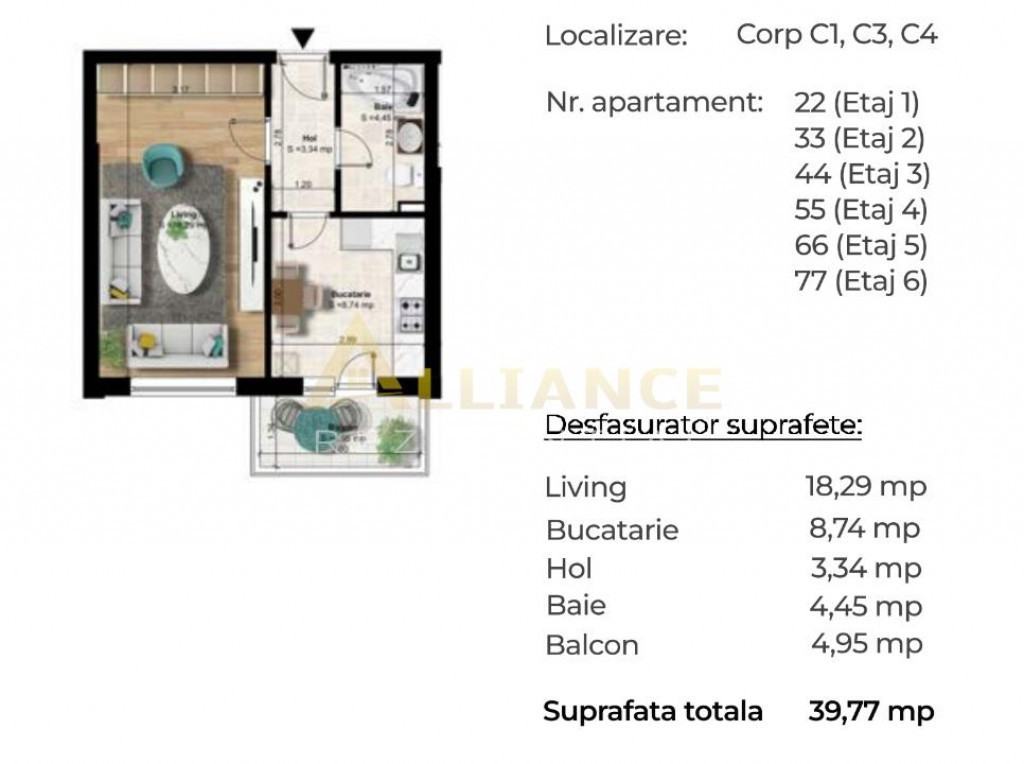 Garsoniera la doar 7 minute de Pasarela Berceni! Suprafata generoasa de 40 mp, confort si eleganta. Locatie strategica, cu scoli, gradinite, centre comerciale, mijloace de transport si sali de fitness in apropiere. Dotari: Lift modern Centrala termica Buderus Kit aer conditionat Pret: 60.000 euro Comision 0% Variante de plata flexibile Pret parcari: Exterioare ndash; 6.600 euro (TVA inclus) Interioare ndash; 8.800 euro (TVA inclus) Termen finalizare: iunie 2027 Contact: 0787 347 251 (WhatsApp disponibil) ndash; programare vizionare!