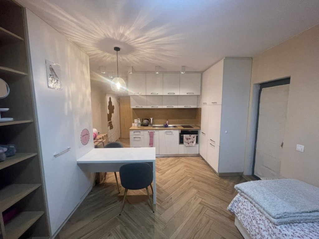 Garsoniera decomandata , parter o suprafata utila de 25 mp vedere spre padure, zona verde linistita, an constructie 1984; centrala, parchet, gresie, mobilata