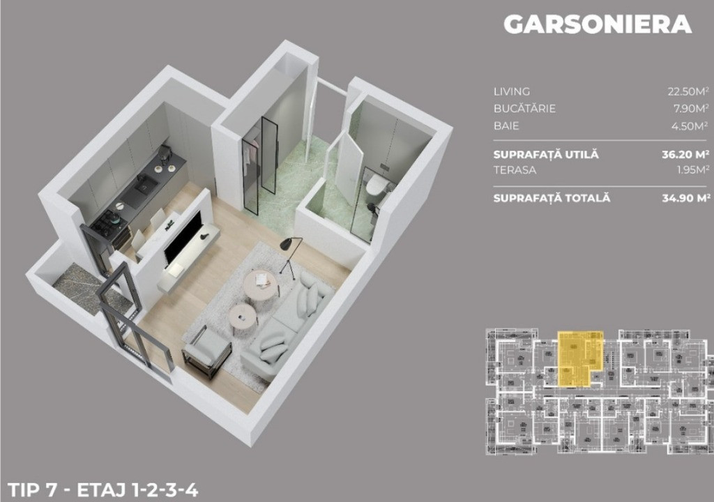 Garsoniera decomandata - Parc Drumul Fermei Popesti Oltentei