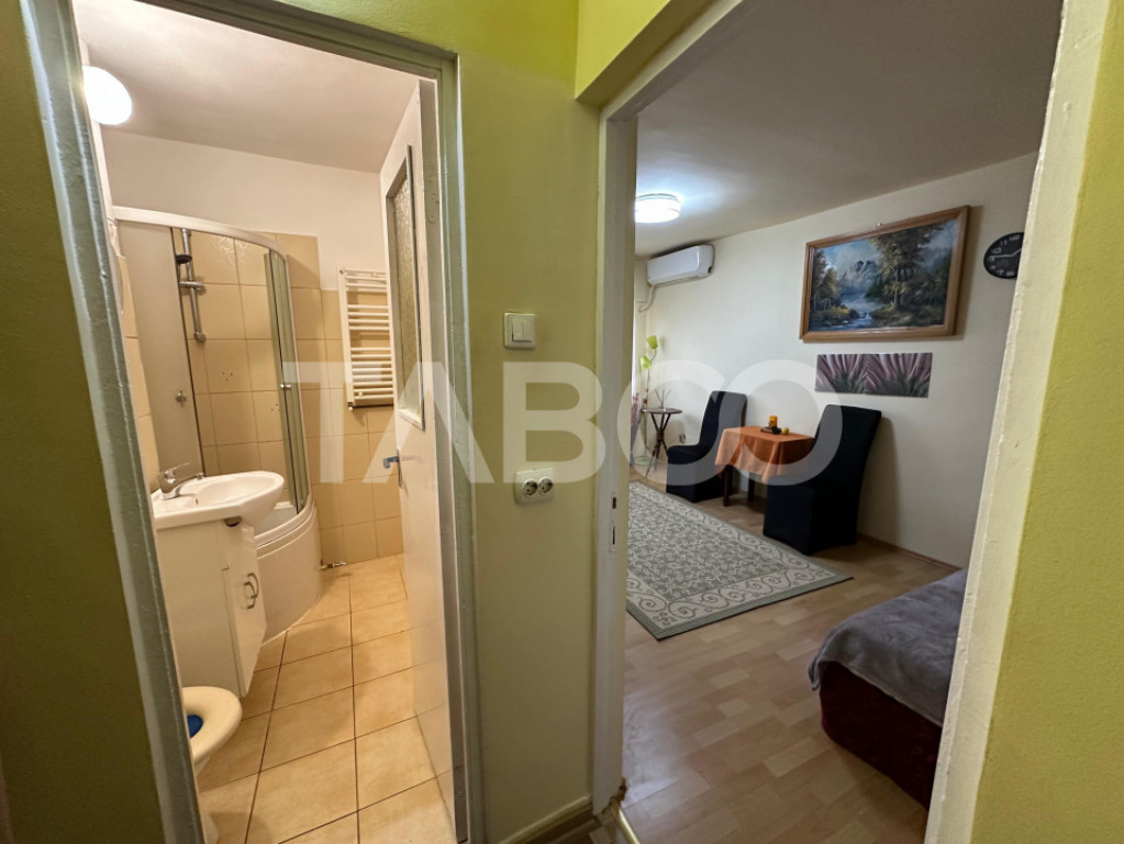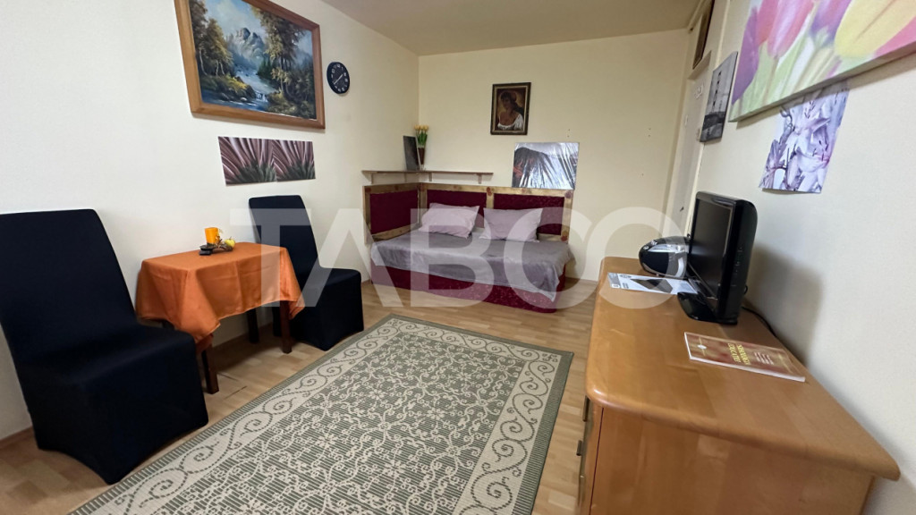 Garsoniera de vanzare, decomandata, 25 mp, zona Calea Dumbravii, Sibiu. Avantaje majore ale acestei garsoniere: • Balcon • Aer Conditionat • Etaj Intermediar TABOO Imobiliare propune un garsoniera de vanzare cu 1 camera, decomandata, situata in localitatea Sibiu, zona Calea Dumbravii, aflata la etajul 3 intr -un imobil tip bloc cu regim de inaltime pe Parter + 4 Etaje; anul constructiei 1988, structura beton. Suprafata utila de 25 mp + balcon de 3 mp. Garsoniera este structurata astfel: • Hol; • Bucatarie; • Baie; • Living cu balcon; Finisajele interioare sunt clasice • Usa intrare: metal; • Usi interioare: celulare • Tamplarie ferestre: pvc, termopan; • Pereti: vopsea lavabila, faianta; • Podele: parchet, gresie. Utilitati si dotari: • Bucatarie: mobilata, partial utilata; • Mobilat: complet; • Utilitati: curent electric, apa, canalizare, gaz, telefon, acces internet, fibra optica; • Izolatii: exterior, bloc izolat termic; • Contorizare: apometre, contor gaz, contor curent electric; • Caracteristici bloc: interfon. Garsoniera se vinde mobilata si semiutilata cu: masina de spalat rufe, frigider cu congelator. Incalzirea se realizeaza prin centrala proprie, calorifere si dispune de sistem de climatizare (A.C.). Se accepta ca si modalitate de plata surse proprii sau credit bancar. Pret: 62.500€ Cod ofertă / ID: P25522 Sună-ne acum la 0369.822.820 și află detalii despre această proprietate de vanzare din Sibiu, dar și despre alte proprietăți potrivite pentru tine. Informatii speciale: 1. Descarcă aplicația pe mobilul tau "TABOO Imobiliare" din Apple Store, Google Play sau Huawei AppGallery pentru a afla instantaneu noile proprietăți care intră pe piață. 2. Dacă ai o proprietate pe care vrei să o vinzi sau să o închiriezi, suntem aici pentru tine! Contactează-ne pentru o evaluare gratuită fără obligații și vei descoperi avantajele de a lucra cu o echipă dedicată și experimentată. 3. Dacă vrei sa incepi o cariera de agent imobiliar, suna la 0369.822.820 si programeaza o intalnire pentru a afla toate beneficiile si avantajele. Intră pe TABOO.ro și descoperă cele mai recente oferte, actualizate zilnic. Anunt actualizat in 5 decembrie 2025. Id intern: P25522