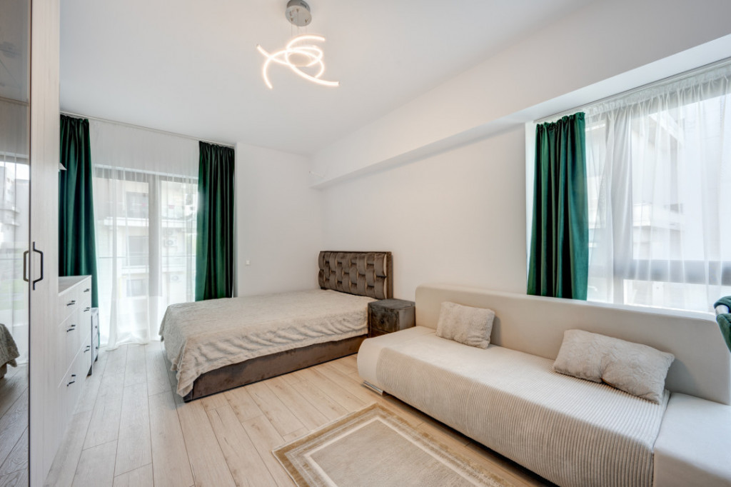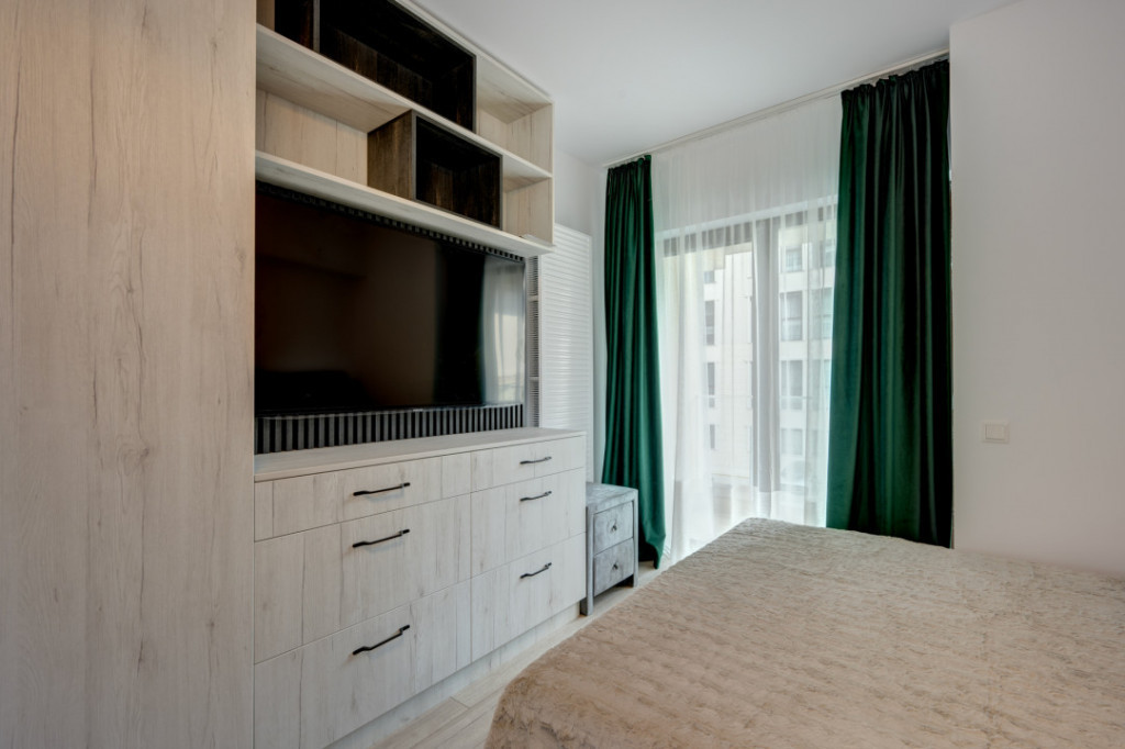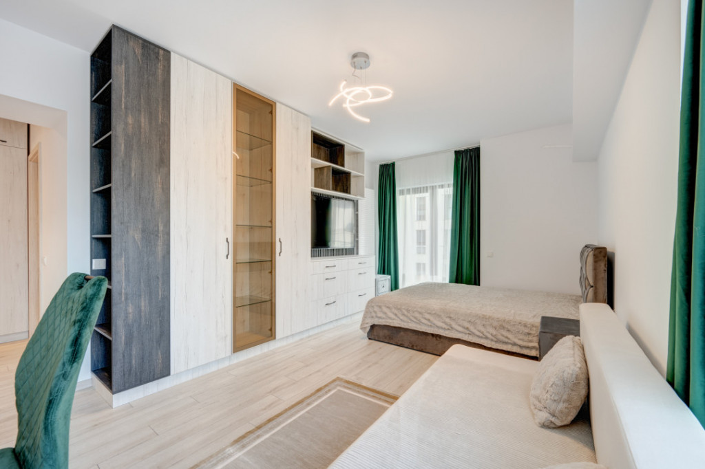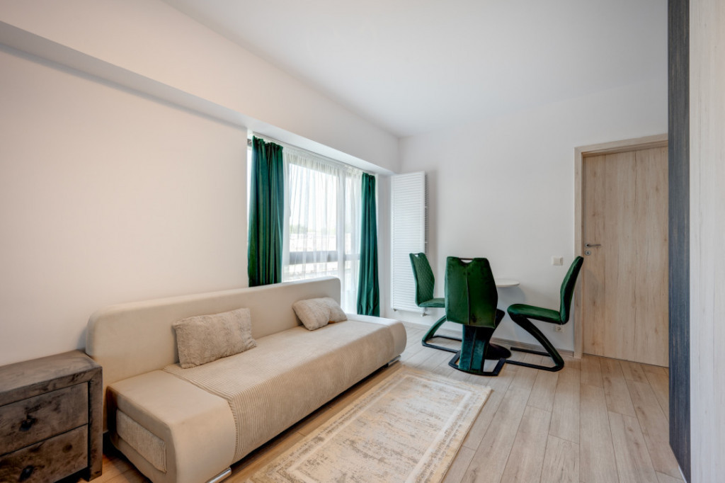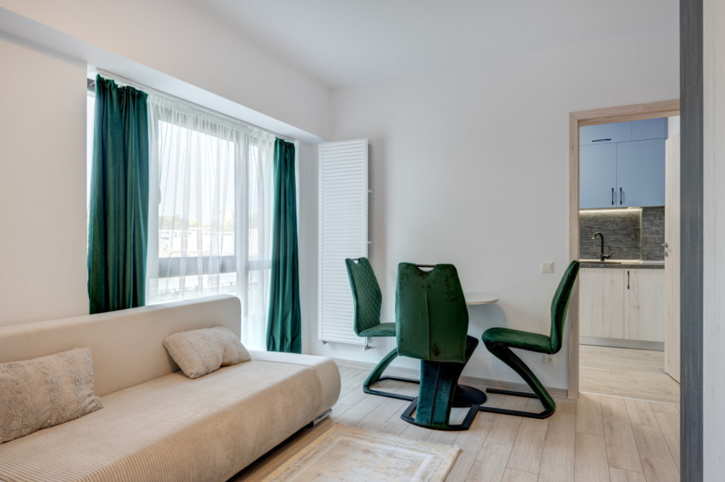 Va prezint spre inchiriere o garsoniera situata in Drumul Taberei in Ansamblul Moghioros Park Residence. Locatia este ideala, aproape de Parc, mijloace de transport in comun, Auchan chiar langa complex, statie de metrou. Garsoniera este situata la etajul 1/10 intr-un imobil predat in folosinta in anul 2023. Garsoniera este spatioasa, are o suprafata de 39 mp si beneficiaza de o terasa cu acces din living. Garsoniera este complet mobilata si utilata si este la la a doua inchiriere. Este amenajata modern si beneficiaza de multe spatii pentru depozitare. Holul de la intrare este amenajat cu un dressing spatios, livingul are de asemenea mobilier cu spatii pentru depozitare, un pat matrimonial si o canapea extensibila, zona de luat masa, TV. Este instalat deja un aparta de aer conditionat. Bucataria este amenajata cu mobilier realizat pe comanda si dotata cu toate electrocasnicele necesare ( plita, cuptor, hota, frigider incorporat). Baia este dotata cu cada si obiecte sanitare si tot in baie este montata masina de spalat rufe. Incalzirea se realizeaza prin intermediul centralei termice proprii iar toate utilitatile sunt contorizate individual. Imobilul este termoizolat termic si este dotat cu lift hidraulic. Garsoniera are un loc de parcare exterior, situat chiar in fata balconului. Garsoniera este libera si disponibila imediat pentru inchiriere. Se inchiriaza pe termen lung cu contract ANAF. Id intern: MA20687