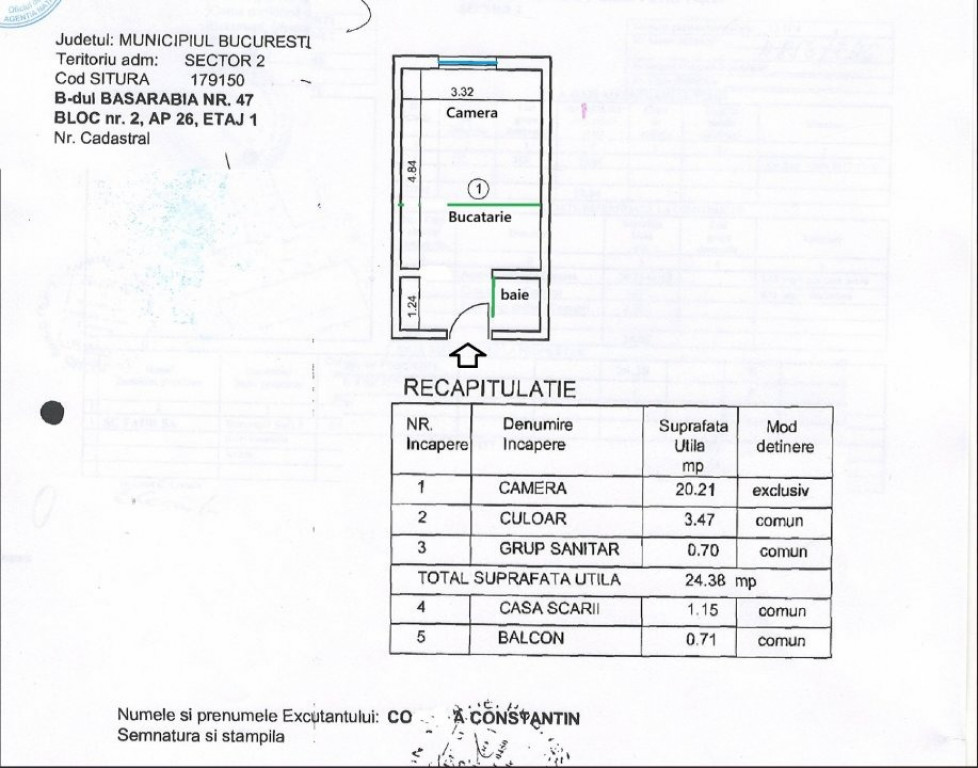 Fara Comision! Anunt al prooprietarului. Garsoniera este chiar langa Arena Nationala, vizavi de Federatia Romana de Fotbal (FRF) si in spatele Spitalului Judetean ILFOV. Imbunatatiri: -Instalatii sanitare inlocuite integral (tevi PPR) -instalatia electrica inlocuita integral (totul este pe cupru) cu sigurante de tip nou. - Centrala proprie pe gaz - Aparat AC - Izolatie exterioara cu polistiren -Mobila de bucatarie este noua. -Renovata in decembrie 2025. -Baia a fost integral refacuta. cu putin timp in urma. Adresa este Bd. Basarabia 47, bloc 2, sc.1, et.1. Intrarea spre bloc se face direct din Bv. Basarabia, printre Liceul Dimitrie Leonida si Spitalul Judetean Ilfov. Strada asfaltata si iluminata. Este la etajul 1 din 3, intr-un bloc aflat la 2 minute distanta de mers pe jos fata de Bulevardul Basarabia (200m). Blocul este contruit pe structura de beton armat in anii 1968-1970, cu grinzi si stalpi iar compartimentarea este din caramida plina. Se vinde mobilata si utilata complet cu aragaz, cuptor, frigider, masina de spalat haine, aer conditionat, centrala termica asa cum se vede in fotografii, dispune de toate utilitatile (gaze, apa rece/calda, canalizare, curent electric, incalzire, internet + cablu TV) si are centrala proprie pe gaz . Pe langa cei 20.21 mp utili ai garsonierei se vand si suprafetele urmatoare: 3.47mp culoar, 0.70mp grup sanitar, 1.15mp casa scarii si 0.71 mp din balconul de serviciu (total in plus 6.03mp) la care se adauga cei 22.64 mp de teren in folosinta trecuti in acte. Exista si posibilitatea folosirii unei boxe la subsolul blocului pentru depozitat diverse. Pentru parcare, exista locuri nenominale chiar langa bloc, terenul din preajma blocului fiind proprietate privata. Minute parcurse PE JOS pana la: -2 minute Arena Nationala si Parcul National deschis si pazit non stop -2 minute - Bulevardul Basarabia (magazine si RATB) -8 minute - Mega Mall -10 minute - Parcul IOR (Alexandru Ioan Cuza-Titan) -13-15 minute Statiile de METROU Costin Georgian si Titan - 20 minute Piata Muncii Actele sunt complete a fost cumparata cu plata cash, nu are ipoteca, nu are niciun risc seismic. Anuntul este garantat valabil atat timp cat este promovat. Pentru programarea unei vizionari si mai multe detalii sunati intre orele 09:00 si 21:00 in orice zi sau lasati un mesaj oricand. Pentru detalii cititi anuntul si sunati! Anunt de la proprietar. Nu se percepe comision! Anunt al proprietarului. Este nelocuita momentan, va puteti muta imediat sau o puteti inchiria imediat!