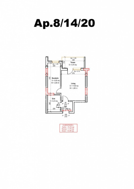 Suprafata utila - 35.30 mp utili +5.70 mp balcon, total 41 mp utili