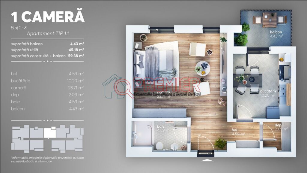 Garsoniera imensa! Sector 4 - Grand Arena - Comision 0 Va prezentam spre achizitie o garsoniera in suprafata echivalenta unui apartament de 2 camere! Garsoniera este decomandata, extrem de spatioasa si bine compartimentata, avand inclusiv o camera destinata depozitarii (debara/dressing). Suprafata totala utila este de 49.9mp, avand in componenta un balcon de 4.4mp, patrat, ce permite lejer pozitionarea unei masute de cafea sau a unui leagan/scoici. Amplasarea este in Sectorul 4, in proximitatea Complexului Comercial Grand Arena si al intersectiei Bulevardului Brancoveanu cu Turnu Magurele. Acces direct catre Metrou Aparatorii Patriei prin intermediul liniei STB 241. Pret fara TVA! Pentru detalii si informatii: George 0730.888.280 Va multumim pentru atentia acordata anunturilor noastre! Serviciul nou oferit de PREMIER Imobiliare! Solicita acum VIZIONARE ONLINE pentru aceasta proprietate! COMISION 0% Această proprietate se poate achiziționa prin orice tip de credit bancar. Departamentul nostru financiar Premier Credit Hub vă stă la dispoziție GRATUIT (comision 0%) pentru: - identificarea celei mai bune soluții de finanțare; - întocmirea dosarului bancar complet; - obținerea rapidă a creditului necesar achiziției. Beneficiați de un serviciu ALL IN ONE, cu acces direct la ofertele tuturor băncilor comerciale din România. Se acceptă inclusiv venituri din străinătate, astfel încât fiecare client să poată cumpăra în cele mai avantajoase condiții. Solicitați acum o simulare de credit direct din anunț sau cereți detalii consultantului Premier Imobiliare!