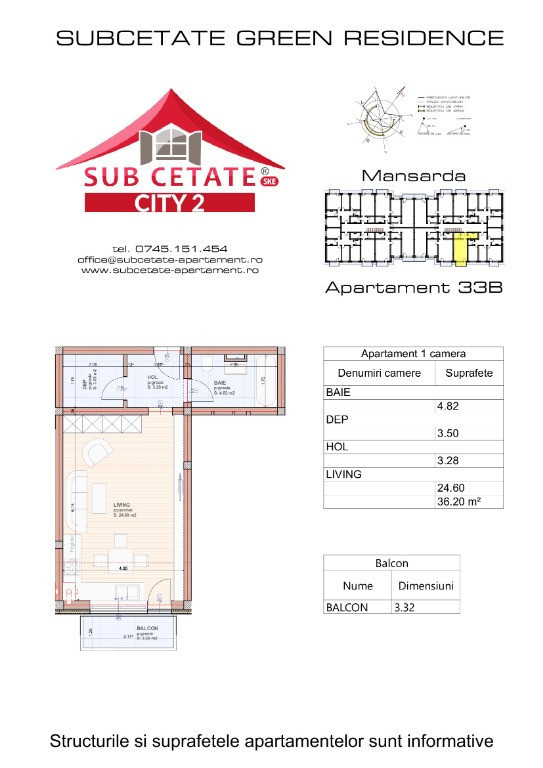 LOCALIZARE: Imobilul este pozitionat la intrarea in comuna Sanpetru, in cartierul SubCetate Residence. In acest cartier regasim magazine de proximitate, centru medical, biserica ortodoxa, gradinita privata. COMPARTIMENTARE: Garsoniera este situata la parterul unei vile, cu regim de inaltime P+2+M, fiind dispusa decomandat, dupa cum urmeaza: - Camera, are o suprafata generoasa si este orientata spre Est; - Bucataria, de tip inchis, este mobilata, si utilata; - Baia, detine fereastra si este dotata cu obiecte sanitare si pstiu pt masina de spalat; - hol de acces generos dotat cu spatii de depozitare. DOTARI: - centrala termica individuala; - incalzire prin calorifere; - tamplarie PVC, cu geam termopan; - Tranzactionarea proprietatii se va face in varianta nemobilata. IMPREJURIMI: Imobilul este situat intr-o zona centrala de vile, accesul auto, pana in Brasov este de 15-20 min. ATRACTII ZONA: Rezervatia naturala Dealul Lempes. ACCESIBILITATE: Transport public în apropiere, la aproximativ 100 m. FORMA ACHIZITIONARE: Se accepta plata prin accesare credit.