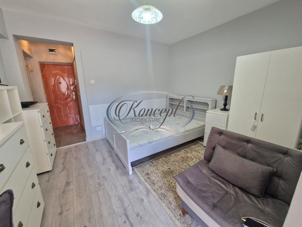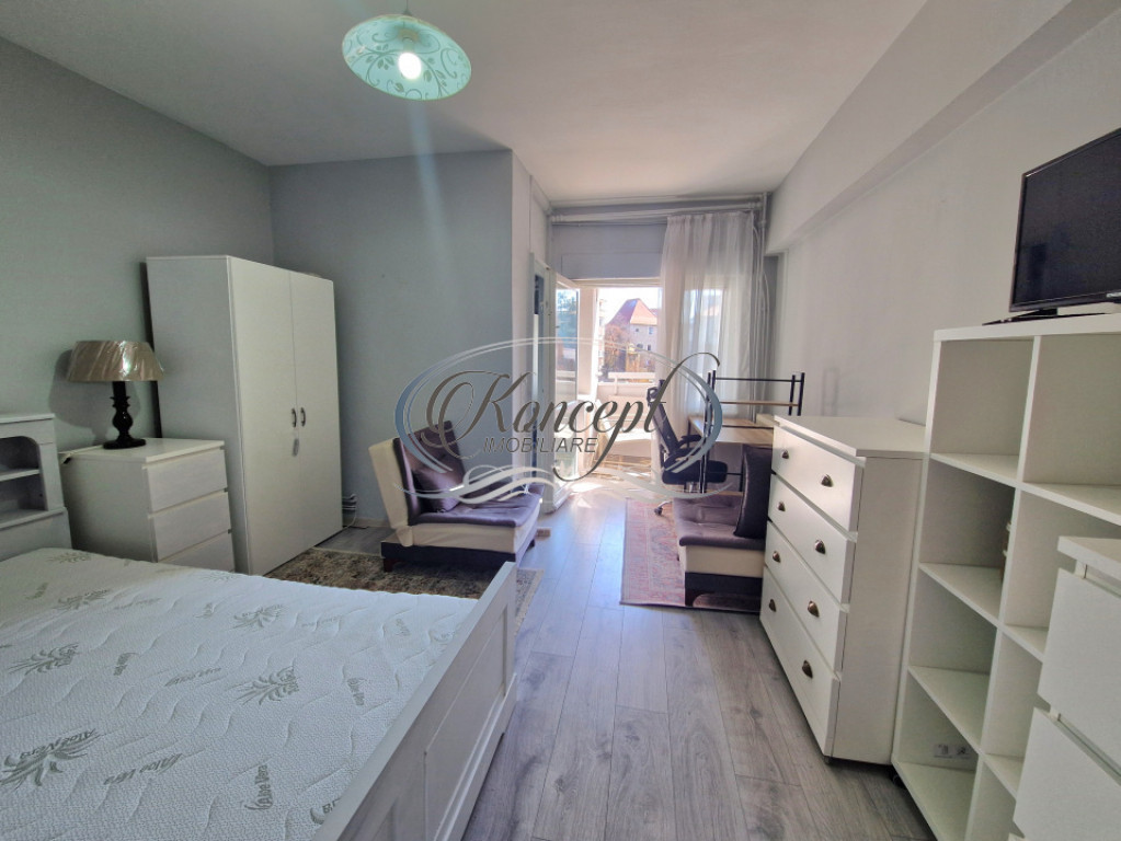 Koncept Imobiliare va ofera spre inchiriere o garsoniera renovata recent, situata in zona Teatrului National, in imediata apropiere de universitati, magazine, banci si restaurante. Amplasarea ultracentrala reprezinta un avantaj major pentru cei care isi doresc acces rapid catre toate punctele de interes din Cluj-Napoca, pastrand in acelasi timp confortul unei locuinte intime si bine organizate. Proprietatea este situata la etajul 1 al unui imobil cu 4 niveluri si are o suprafata utila de 30 mp, completata de o terasa generoasa de 6 mp, amenajata cu masa si scaune, ideala pentru relaxare. Un element distinctiv al acestei garsoniere din zona Teatrului National este privelistea superba catre Turnul Croitorilor, care ofera un cadru urban aparte si un plus de valoare experientei locative. Orientarea sud-vestica asigura lumina naturala pe tot parcursul dupa-amiezii si o atmosfera calda. Compartimentarea este practica si eficienta, fiind compusa din hol de intrare, baie cu cada, camera principala, bucatarie separata, iar accesul catre terasa se face din camera. Bucataria este distinct delimitata, oferind functionalitate sporita si confort in utilizare. Garsoniera se inchiriaza complet mobilata si utilata, dispunand de masina de spalat rufe, frigider, aragaz cu cuptor si televizor. Incalzirea este asigurata prin centrala termica proprie cu calorifere, ceea ce permite control individual al temperaturii si costuri optimizate. Renovarea recenta, terasa amenajata cu panorama urbana deosebita, orientarea favorabila si pozitionarea ultracentrala transforma aceasta proprietate intr-o optiune ideala pentru cei care apreciaza stilul de viata urban si accesibilitatea. Este potrivita pentru inchiriere pe termen lung, pentru o persoana singura sau un cuplu care isi doreste o garsoniera moderna in centrul orasului, cu acces facil la institutii culturale si universitati. Pentru informatii suplimentare, programarea unei vizionari sau pentru a afla oferta noastra completa va stam la dispozitie telefonic, prin e-mail sau la sediul agentiei noastre, pe str. Aviator Badescu, nr. 19, Cluj-Napoca. Id intern: P21228