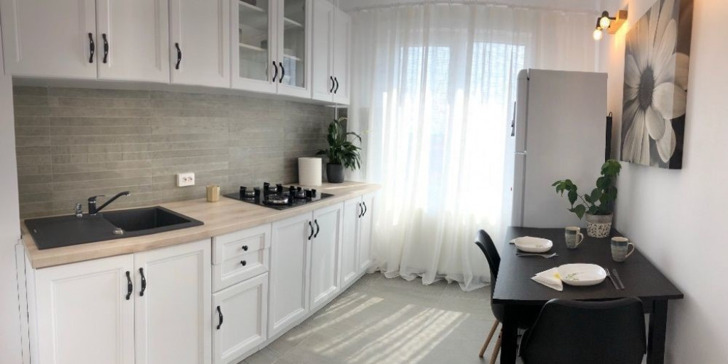 Se ofera spre inchiriere garsoniera cu o suprafata de 42mp, care este utilata si mobilata complet, cu finisaje de inalta calitate, cabina de dus noua, bucatarie facuta pe comanda, canapea extensibila comoda care la preferintele chiriasului se poate schimba cu un pat. Ca si locatie se afla la 15 minute de centru vechi de mers pe jos, camera de comert la 4 minute, pasajul marasesti la 5 minute, metrou timpuri noi la 6 minute. Garsoniera a mai fost inchiriata de 2 ori, se doreste ca inchirierea sa se faca pe termen lung. Cerem si oferim seriozitate!
