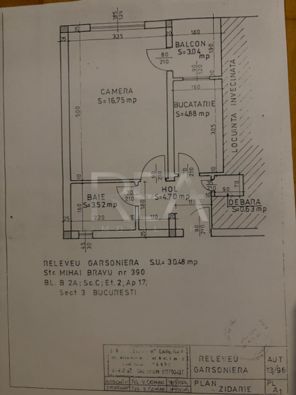 RE.A Imobiliare vă invită să vizionați o garsonieră de vânzare cu 85000 de euro la 650 de metri de stația de metrou Dristor 2,ceea ce înseamnă că ajungeți în maximum 9 minute mijlocul de transport. Locuința are o compartimentare decomandată, la etajul 2/10, într-un bloc construit în anul 1978. Amplasare privilegiată->grădinițe,școli gimnaziale,liceul tehnologic Mihai Bravu,magazine alinmentare,săli de fitness,stația pentru tramvaiele 23,27 și 49,agențiile și sucursalele câtorva bănci comerciale,piața Râmnicu Sărat,farmacii,stația autobuzelor 627 și 112 între vecinătatea șoseaua Mihai Bravu și rond Baba Novac. Propietarul vinde imobilul parțial mobilat și utilat,iar modalitățile de plată acceptate de acesta sunt creditul ipotecar și transferul bancar(cash). Vânzătorul acceptă plata garsonierei în lei sau euro la cursul B.N.R din ziua respectivă. Suprafață totală de 33,52 m.p, din care suprafața utila este 30,48 m.p, balcon 3,04 m.p. Configurație: 1 cameră,bucătărie,hol,o baie și balcon. Sistem incalzire: centrală proprie. Acces la transportul public: 9 minute până la stațiile de metrou Dristor 1 ș iDristor 2. Pentru detalii și vizionări,vă rugăm să ne contactați, specificând codul de identificare P9622. Id intern: P9622