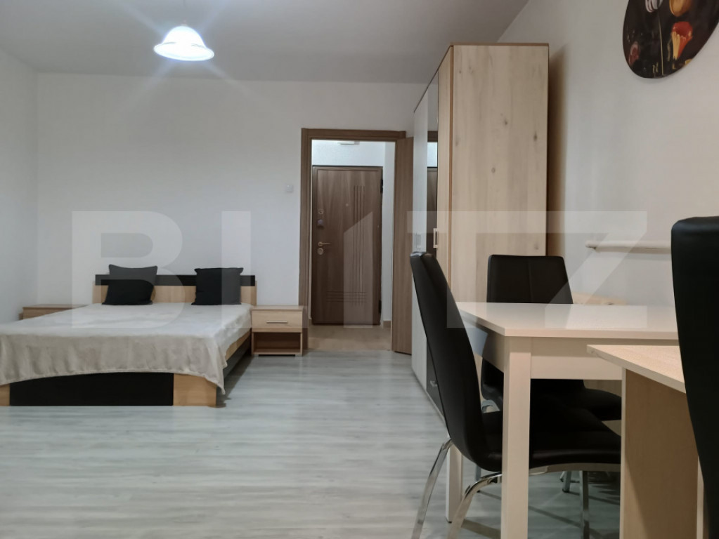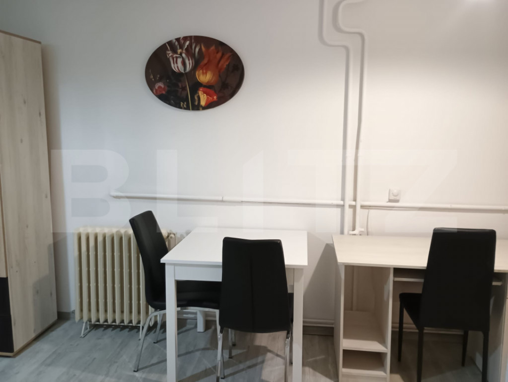 Blitz oferă spre închiriere o garsonieră confort 1, situată în cartierul Mănăștur. Imobilul are o suprafață utilă de 32 mp și dispune de balcon închis, fiind poziționat la etajul 5 al unui bloc dotat cu două lifturi. Blocul beneficiază de interfon la intrare, precum și interfon suplimentar pe palier, oferind un plus de siguranță și confort. Locația este excelentă, cu acces rapid la mijloacele de transport în comun, magazine, Parcul Colina, precum și la VIVO Mall. Garsoniera a fost recent renovată complet și este finisată modern: ferestre termopan, uși interioare noi, parchet laminat, mobilier nou și centrală termică proprie, ceea ce asigură costuri reduse de întreținere. Imobilul este curat și foarte liniștit. Locuința este disponibilă imediat și se poate ocupa în orice moment. Pentru mai multe informații sau pentru programarea unei vizionări, vă rugăm să ne contactați telefonic. Cod ofertă / ID BLITZ: P163402 Id intern: P163402
