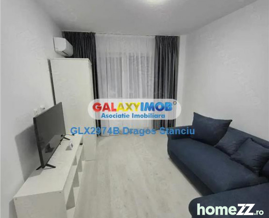 Garsoniera este mobilata cu o canapea extensibila, comoda, dulap, bucatarie mobilata si utilata cu frigider, masina de spalat, aragaz, centrala termica proprie, aer conditionat. Balconul este inchis, cu iesire din bucatarie.