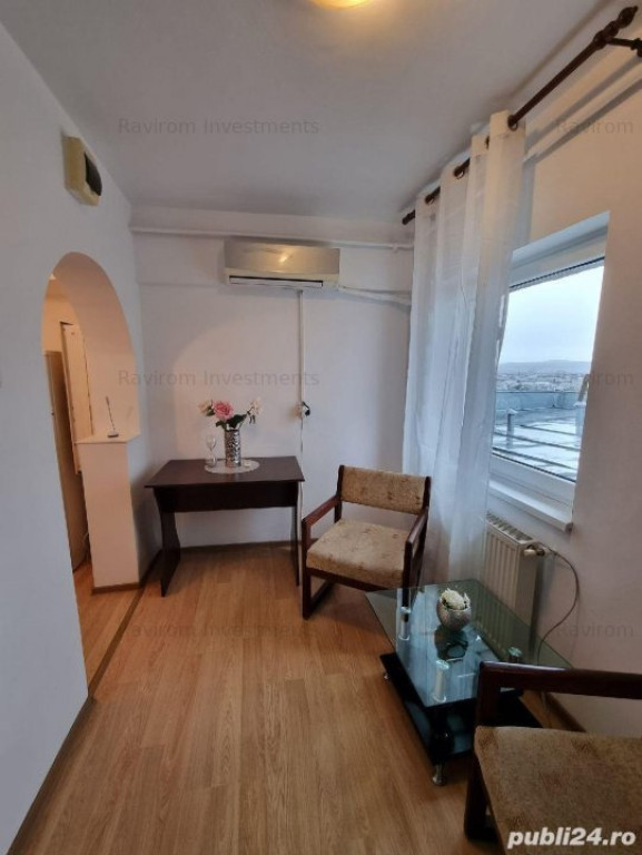 R A V I R O M I m o b i l i a r e va propune spre I N C H I R I E R E o garsoniera decomandata situata la etajul zece in zona ultracentrala, compusa din hol, camera, bucatarie, baie, terasa.