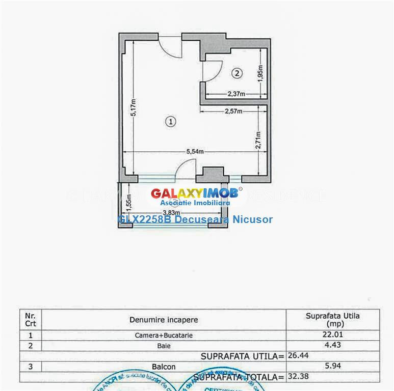 Oferta Exclusiva. Avem cheile proprietatii. Agentia Daryan Imobiliare Residende va ofera spre vanzare garsoniera situata pe strada Ilie Petre, nr. 86, in complexul rezidential MILITARI RESIDENCE. Situata la etajul 8 al unui bloc cu 8 etaje, cu placa de beton deasupra si pod cu o suprafata de 33 mpu. Bloc prevazut cu 2 lifturi. BENEFICII: Complexul MILITARI RESIDENCE, pune la dispozitia locuitorilor: piscina exterioara si interioara, spa, wellness, restaurante, locuri amenajate pentru copii, sala de forta, farmacii, spalatorii auto si cel mai mare complex comercial din MILITARI. PRET: 47.900 euro Se accepta atat plata cash, cat si plata prin credit bancar. Comision: 1% din valoarea proprietatii (oferim factura si chitanta ) Detalii la telefon: 0771 03.83.41. Multumim! Informatii eficienta energetica: Clasa energetica: Consumul de energie primara: Indicele de emisii echivalent CO2: Consum de energie din surse regenerabile: