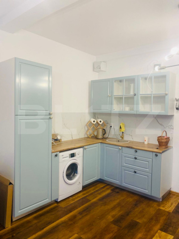 Blitz Imobiliare oferă spre vânzare o garsonieră superbă, modern amenajată, cu o suprafață utilă de 36 mp, situată într-o zonă liniștită și ușor accesibilă. Locuința este recent renovată și se vinde complet mobilată și utilată, exact ca în poze. Garsoniera impresionează prin designul său elegant și funcțional: Baie spațioasă cu duș walk-in, finisaje premium, obiecte sanitare moderne și detalii aurii rafinate; Bucătărie complet utilată, cu mobilier nou, blat din lemn și accente pastelate care oferă un aer primitor; Zonă de dormit/living cu pat matrimonial, mobilier din lemn masiv, corpuri de iluminat moderne, perdele și draperii de calitate, plus o fereastră mare ce asigură lumină naturală abundentă. Locuința este ideală pentru o persoană singură sau un cuplu, fiind perfectă atât pentru locuit, cât și ca investiție (închiriere pe termen lung sau scurt). Suprafață utilă: 36 mp Mobilată și utilată complet Finisaje premium, mobilier nou Lumină naturală și atmosferă primitoare Preț: 105000 euro Pentru mai multe detalii sau pentru programarea unei vizionări, nu ezitați să mă contactați! Cod ofertă / ID BLITZ: P156982 Id intern: P156982