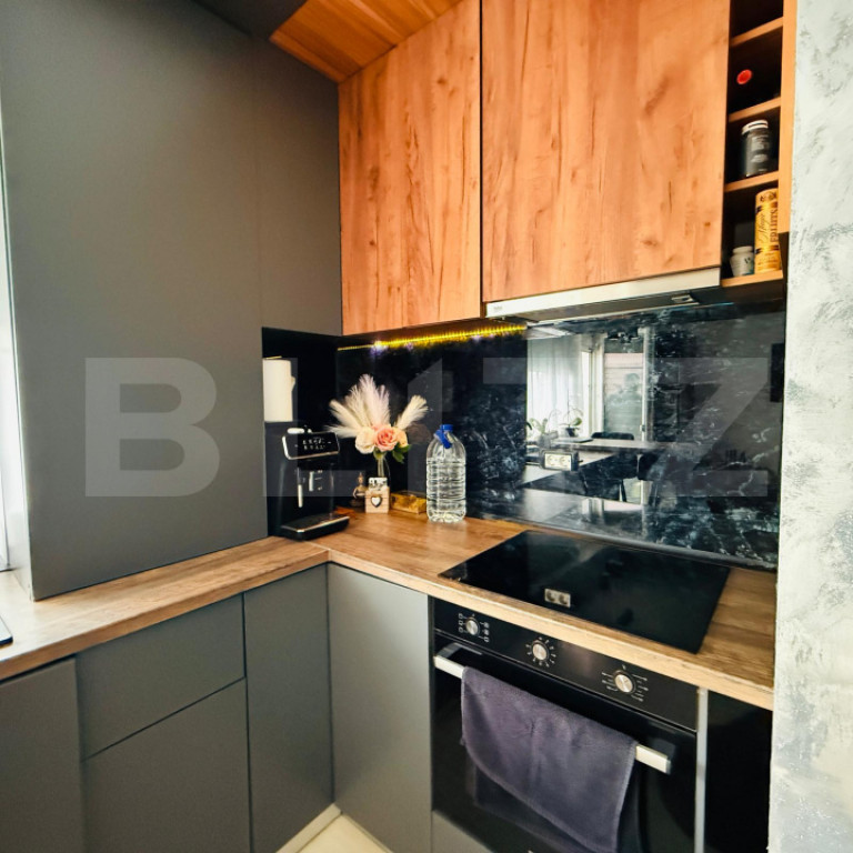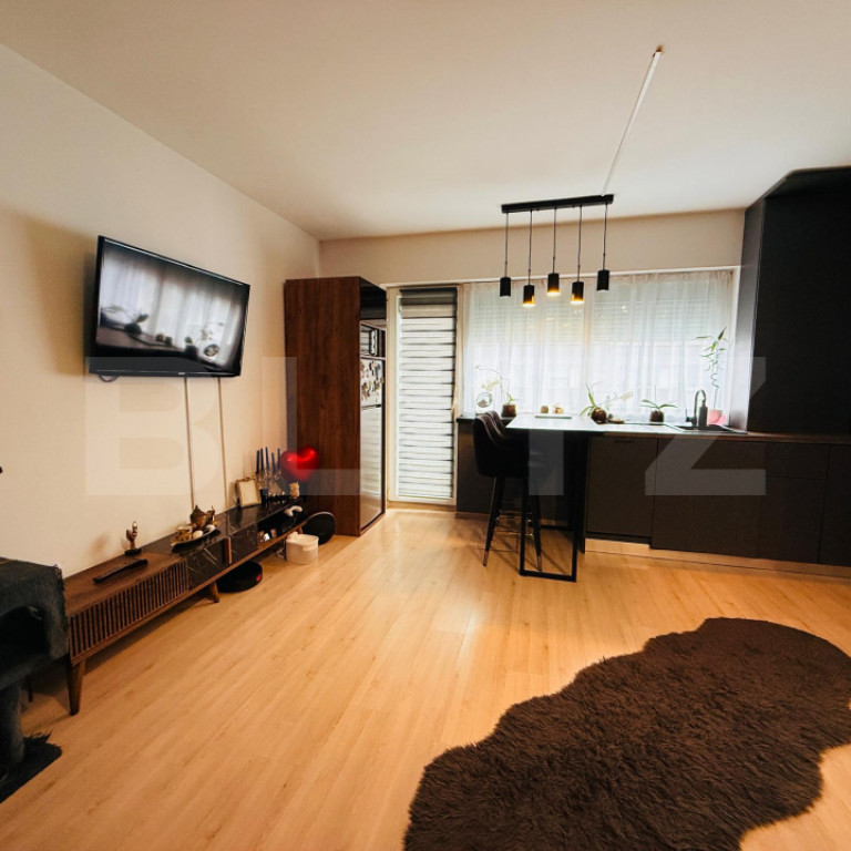 Blitz ofera spre vânzare o garsonieră modernă, cu o suprafață de 39 mp, situată într-un complex rezidențial, la etajul 4 din 4. Locuința este ideală atât pentru locuit, cât și pentru investiție, fiind complet mobilată și utilată, pregătită pentru mutare imediată. Garsoniera este amenajată cu atenție la detalii, oferind un spațiu confortabil și eficient compartimentat, perfect pentru un stil de viață modern. Beneficiază de finisaje de calitate și dotări care asigură un nivel ridicat de confort. Dotări și facilități: • Încălzire în pardoseală – pentru un confort termic optim pe tot parcursul anului • Obloane electrice – pentru intimitate și control facil al luminii • Mașină de spălat rufe • Uscător de rufe • Mașină de spălat vase Poziționarea la ultimul etaj oferă liniște și intimitate, fără vecini deasupra, precum și o priveliște deschisă. Opțional, se poate achiziționa loc de parcare la prețul de 5.000 EUR. Pentru mai multe detalii sau programarea unei vizionări, nu ezitați să mă contactați. Cod ofertă / ID BLITZ: P167828 Id intern: P167828