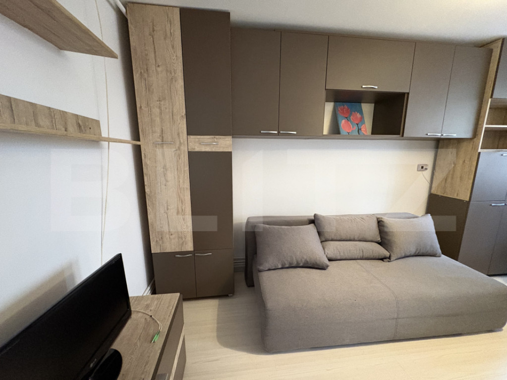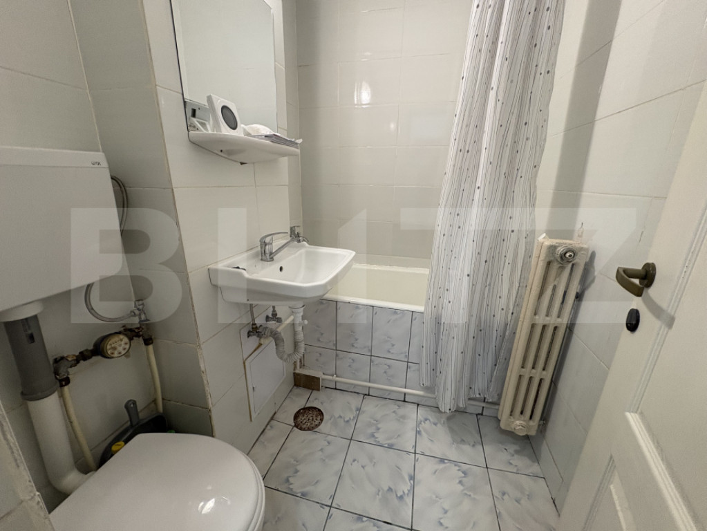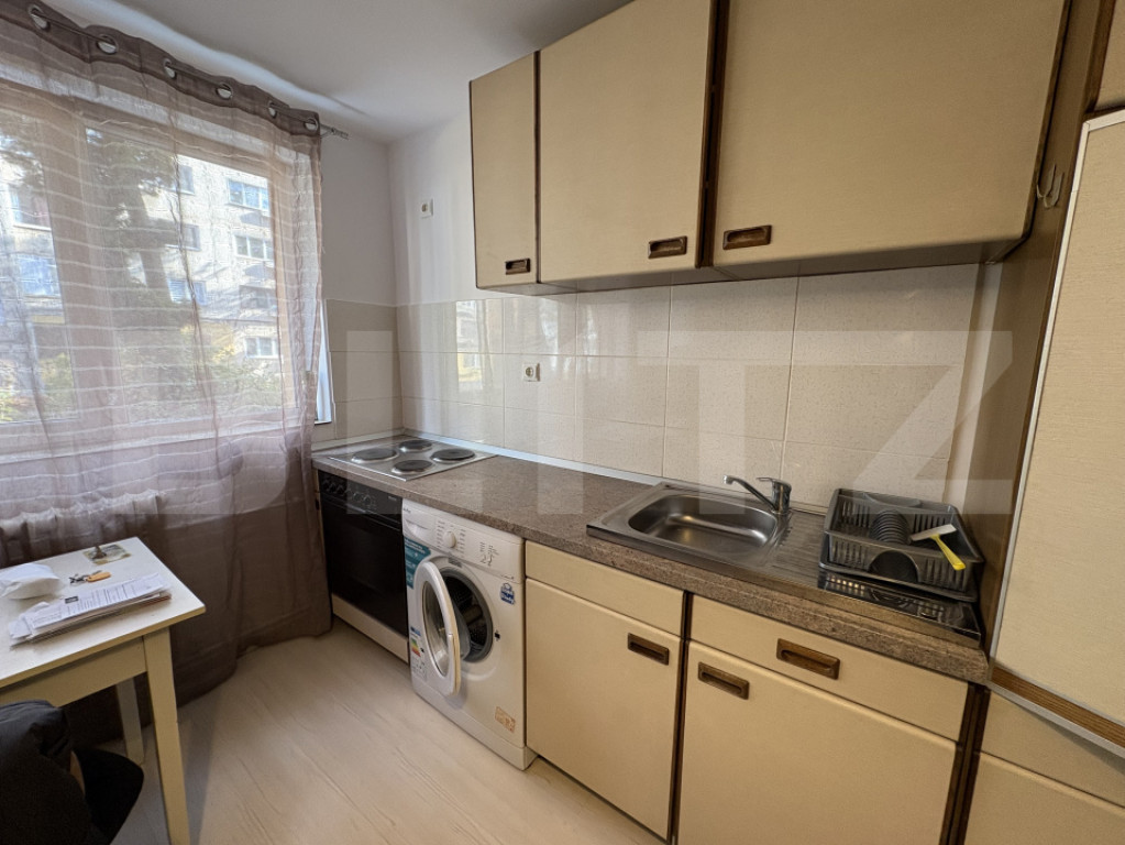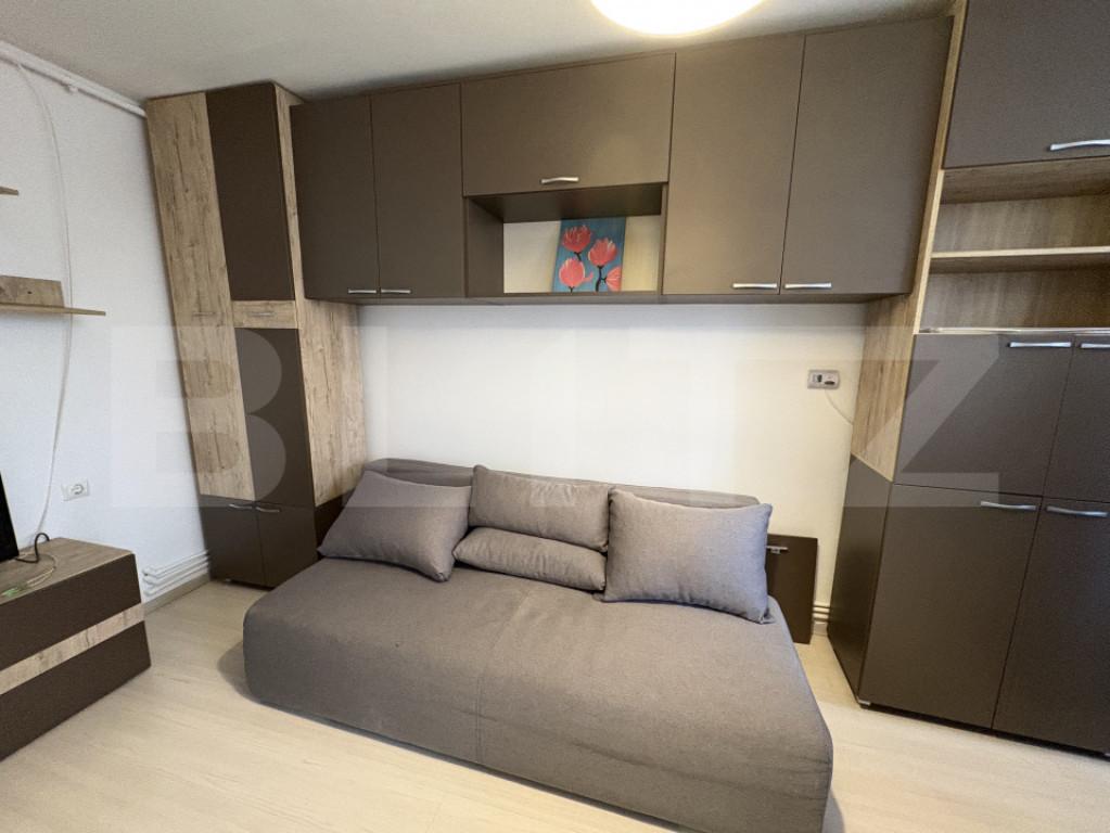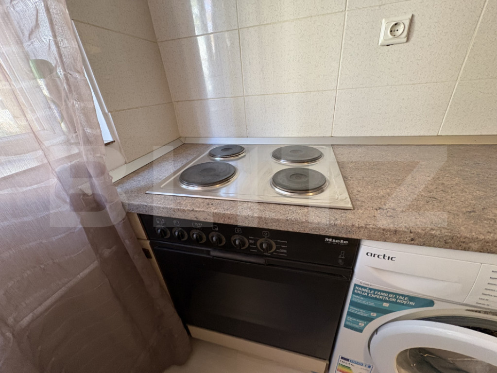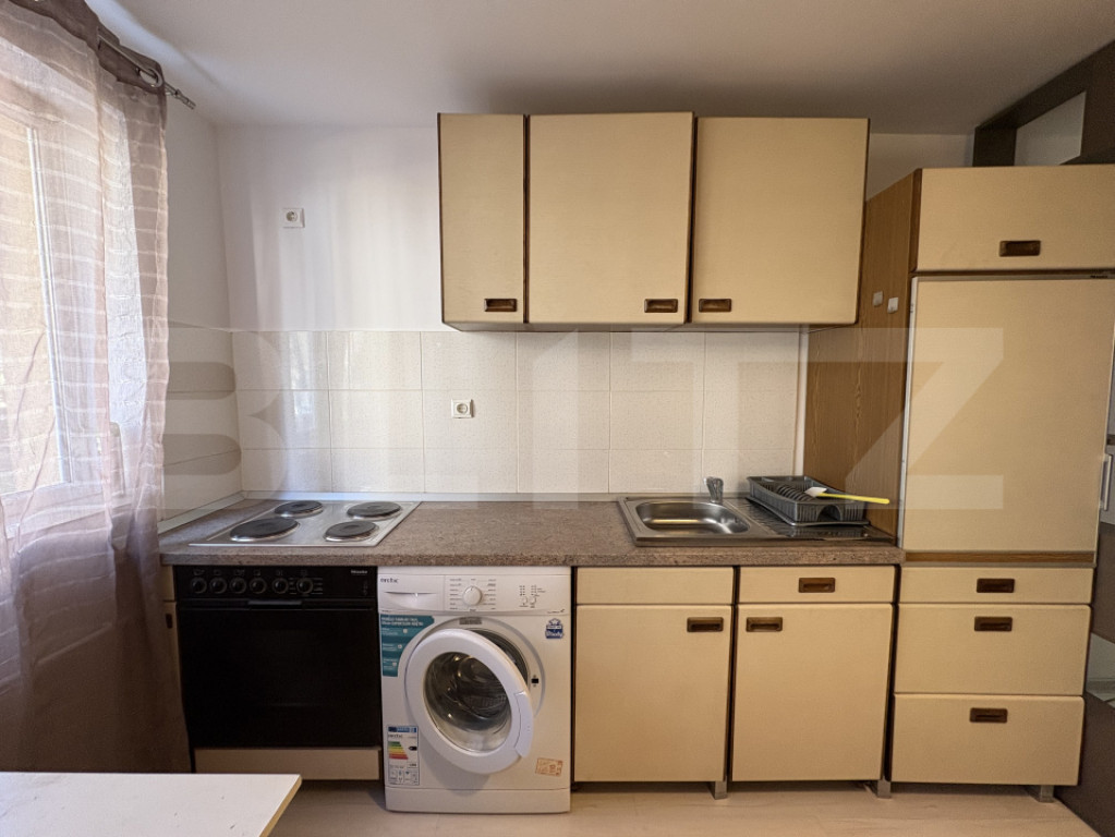 Blitz oferă spre închiriere o garsonieră situată în cartierul Mănăștur, zona străzii Primăverii, la parterul unui imobil nou cu 4 niveluri. Locuința are o suprafață utilă de 22 mp și este ideală pentru o persoană care își dorește un spațiu eficient, bine organizat și ușor de întreținut. Compartimentarea este semidecomandată, iar garsoniera se închiriază complet mobilată și utilată. Totul este nou, ales cu atenție pentru confort și funcționalitate. Dotări: Centrală termică proprie Mașină de spălat rufe Arctic Cuptor Miele Frigider Miele Canapea extensibilă Multiple spații de depozitare Baie cu cadă și sistem de ventilație Zona este bine conectată, cu acces rapid către magazine, stații de autobuz și alte puncte de interes din cartier. Disponibilă imediat. Te așteptăm la vizionare! Cod ofertă / ID BLITZ: P34267 Id intern: P34267