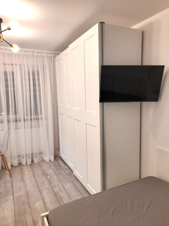 TOTUL NOU: Garsoniera nu a mai fost locuită după renovare. Este complet mobilată și utilată, pregătită să te primească. Ai un pat matrimonial, noptieră, TV LCD, dressing încăpător cu uși glisante, comoda, măsuță tip birou și scaun. E aerisită, luminoasă, cu aer condiționat și o atmosferă primitoare.