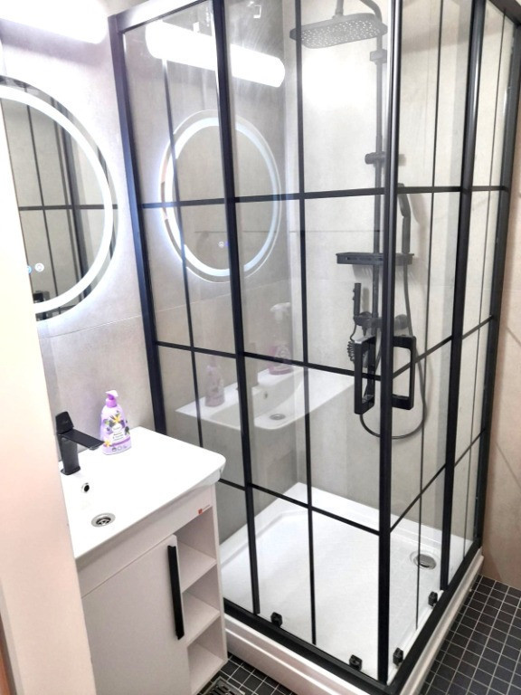 BAIE ȘI HOL: Holul de intrare are cuier, oglindă, pantofar. Baia este dotată cu cabină de duș, ventilator și finisaje noi. Toate instalațiile – termice, electrice, sanitare – sunt înlocuite.