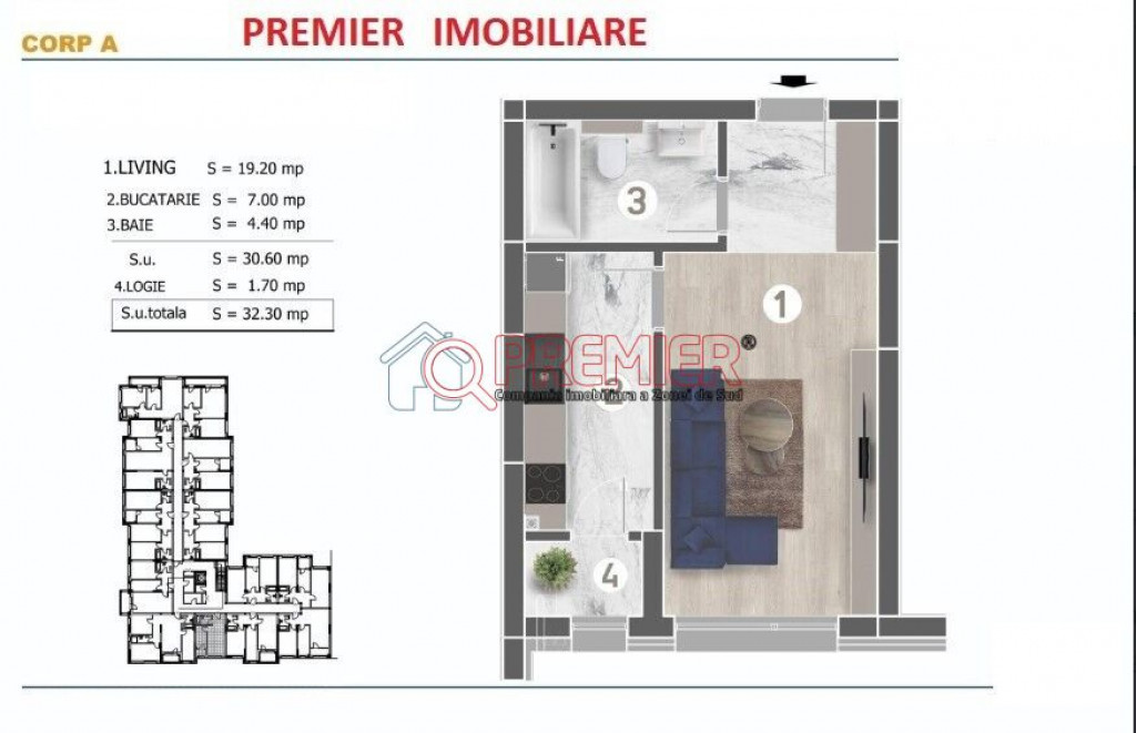 Premier Imobiliare va ofera spre vanzare o garsoniera, situata la etajul 5 din 6 nivele, cu o suprafata totala utila de 32,30 mp la pretul promotional de :