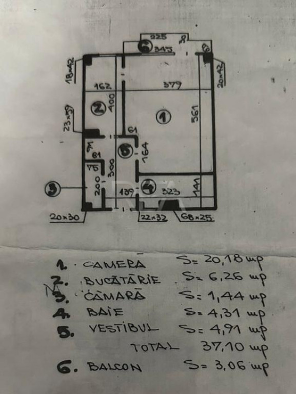 Compartimentare: dormitor, bucătărie, baie și balcon.