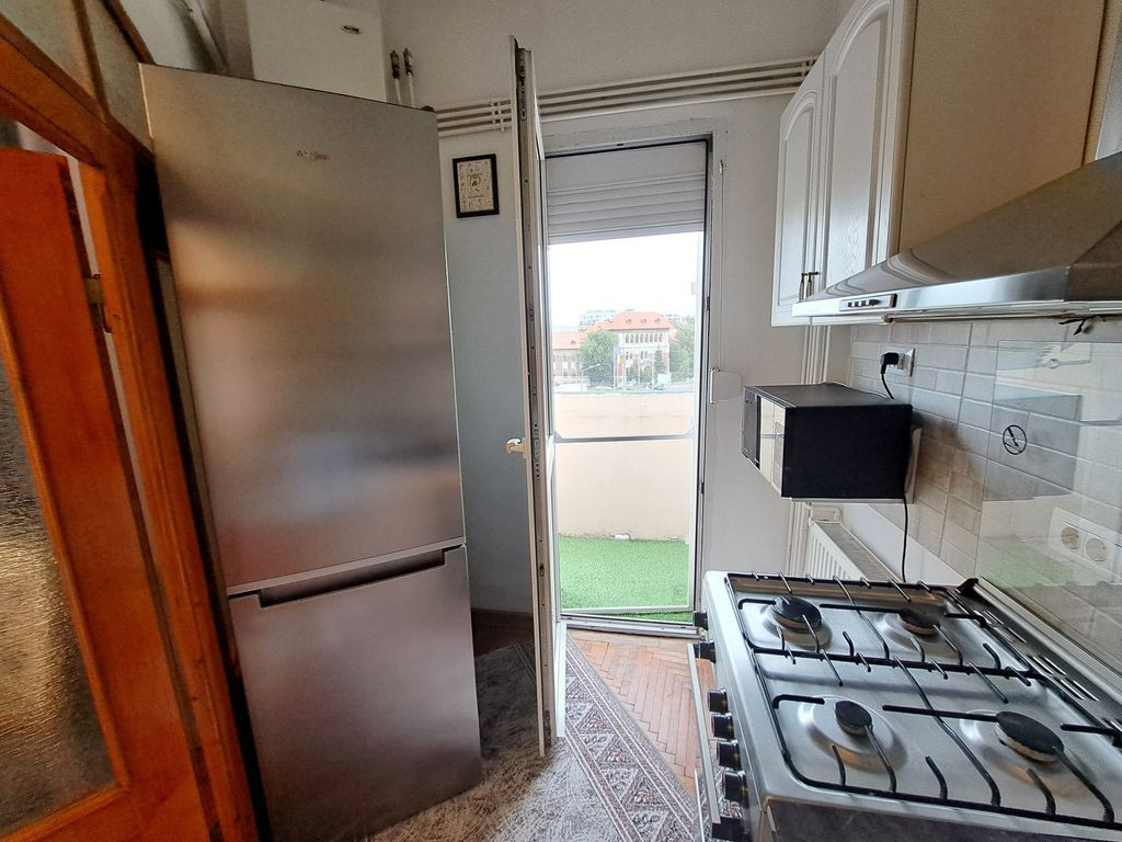 Va propunem spre inchiriere o garsoniera situata pe bd. Dacia, cu suprafata totala de 33,33 de metri patrati, aflata la etajul 4 din 4 + Mansarda. Garsoniera este complet renovata, mobilata si utilata, atat mobila si electrocasnicele sunt noi cat si instalatiile electrice si sanitare. Dispune de centrala proprie pe gaz, televizor, masina de spalat, frigider, aragaz, aer conditionat, cuptor cu microunde, hota, canapea extensibila. Garsoniera este luminoasa si are o priveliste frumoasa spre bd. Dacia si dispune de 2 balcoane ce se intind pe intreaga lungime a camerei si bucatariei. Certificat energetic clasa A. We offer for rent a studio located on bd. Dacia, with a total area of 33.33 square meters, located on the 4th floor of 4 + Attic. The studio is completely renovated, furnished and equipped, both the furniture and the appliances are new and the electrical and sanitary installations. It has its own gas boiler, TV, washing machine, air conditioning, refrigerator, stove, microwave, hood, sofa bed. The studio is bright and has a beautiful view towards bd. Dacia also has 2 balconies that extend along the entire length of the room and kitchen. Class A energy certificate.