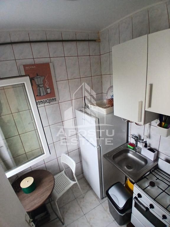 APOSTU ESTATE va propune spre inchiriere garsoniera cocheta , situata intr-o zona linistita si bine conectata din Timisoara , ideal pentru cupluri sau persoane care doresc un spatiu generos si confortabil. Suprafata utila: 20mp Compartimentare eficienta: Hol de acces generos Bucatarie complet mobilata si utilata Dormitor matrimonial mobilat Baie cu dus Confort si facilitati: Confortul termic se realizeaza prin termoficare Etaj 4/5 Apartamentul este complet mobilat si utilat Localizare: Zona Buziasului – liniste, acces facil spre oras, in apropiere de magazine, scoli si mijloace de transport in comun. Ideal pentru: Familii Cupluri Profesionisti care lucreaza remote sau au nevoie de birou acasa Disponibilitate 15.11.2025 Pret chirie: 250€ + garantie Programeaza o vizionare! ID intern: CP2777482