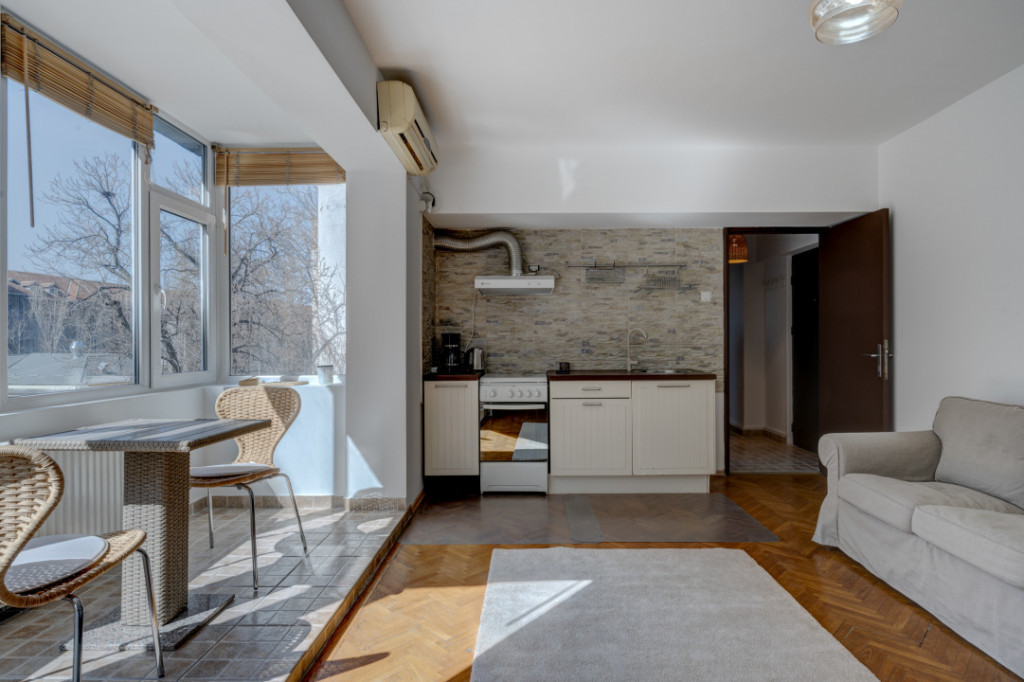 Pe strada Luterană, vis-a-vis de Biserica Luterană, la etajul 3/6 al unui bloc reabilitat termic, construit în 1966, este disponibilă la închiriere o garsonieră mobilată, utilată și plină de lumină naturală. Vederea garsonierei este pe spate, deci este ferită de zgomotul traficului. Din holul de la intrare, spre stânga, este camera garsonierei care are 21,5mp la care se adaugă și balconul de 3mp (inclus în suprafața utilă), cu ferestre mari spre curtea din spate. În față este o debara în care este situată și mașina de spălat, iar lângă ea este baia cu cadă și aerisire directă. Zona este foarte interesantă, blocul este la doi pași de Calea Victoriei cu cafenele și restaurante căutate, de Ateneul Român, Sala Palatului, de fostul Palat Regal ce găzduiește Muzeul Național de Artă. Locuind aici ești foarte aproape de majoritatea evenimentelor culturale și artistice din oraș. De asemenea, este bine conectată la transportul public, iar în apropiere este Parcul Cișmigiu. Pentru mai mute detalii, vă rog, să mă contactați. Id intern: AT12420