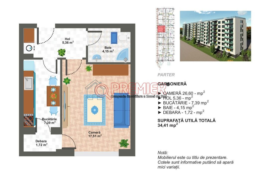 Garsonieră nouă – Apărătorii Patriei / Metalurgiei – Drum Binelui, Sector 4 ???? La 10 minute de metrou | Bloc nou finalizare iunie 2026 | Ideală pentru locuit sau investiție ???? Detalii principale: • Suprafață utilă: 33.55 mp • Etaj: P / 6 • Compartimentare: Decomandată • Bucătărie: Închisă • Balcon: 1 (4,7 mp) • An construcție: 2026 • Confort: I • Stare: Nouă, complet finisată • Mobilare: Nemobilată ???? Dotări și finisaje: • Centrală termică proprie • Radiatoare din oțel • Gresie, faianță, parchet laminat • Uși interioare moderne • Lift • Ușă metalică la intrare • Conexiune fibră optică • Bransată la toate utilitățile (apă, gaze, curent, canalizare) • Contorizare individuală ???? Avantaje zonă: • Situată pe Drumul Binelui, zona Apărătorii Patriei – Metalurgiei • Acces facil la transport public și metrou (10 min pe jos) • În apropiere: magazine, piață, școală, grădiniță, parc, centre comerciale • Străzi asfaltate și ansamblu rezidențial modern ???? Beneficii: ✅ Bloc nou, structură din beton și cărămidă ✅ Clasă energetică A – eficiență ridicată ✅ Fără sarcini, acte complete ✅ Loc de parcare disponibil contracost ✅ Se acceptă plata cash sau credit ✅ Ideală ca locuință personală sau investiție cu randament bun ???? Preț: 57.500 € + TVA AVANS ANTECONTRACT 15% Comision cumpărător: 0% ???? Contact: Adrian Cantia – 0731 510 854 ???? Vino să vezi această proprietate! Programează o vizionare chiar astăzi și descoperă dacă poate fi viitorul tău acasă. Serviciul nou oferit de PREMIER Imobiliare! Solicita acum VIZIONARE ONLINE pentru aceasta proprietate! COMISION 0% Această proprietate se poate achiziționa prin orice tip de credit bancar. Departamentul nostru financiar Premier Credit Hub vă stă la dispoziție GRATUIT (comision 0%) pentru: - identificarea celei mai bune soluții de finanțare; - întocmirea dosarului bancar complet; - obținerea rapidă a creditului necesar achiziției. Beneficiați de un serviciu ALL IN ONE, cu acces direct la ofertele tuturor băncilor comerciale din România. Se acceptă inclusiv venituri din străinătate, astfel încât fiecare client să poată cumpăra în cele mai avantajoase condiții. Solicitați acum o simulare de credit direct din anunț sau cereți detalii consultantului Premier Imobiliare!