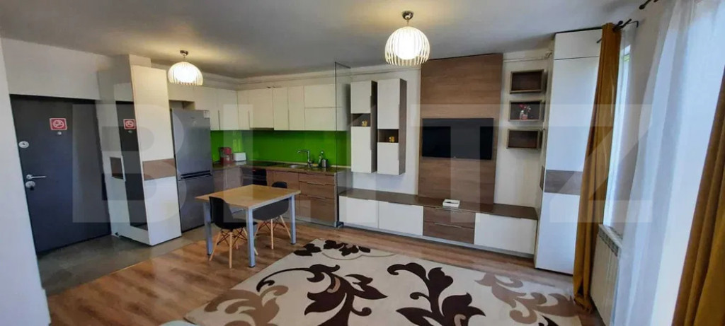 Blitz vă propune spre închiriere o garsoniera, situata în zona exclusivistă Andrei Mureșanu Sud — o alegere perfectă pentru cei care apreciază confortul urban, eleganța și liniștea. Având o suprafață generoasă de 40 mp, locuința impresionează printr-un design modern, care îmbină armonios funcționalitatea cu estetica. Apartamentul este complet mobilat și utilat, oferind tot ceea ce este necesar pentru un trai confortabil și relaxant. Spațiul se deschide într-o zonă de bucătărie elegantă, dotată cu plită, cuptor și combină frigorifică, urmată de o zonă de living primitoare, decorată cu bun gust, unde seregăsește un TV și multiple spații de depozitare. Zona benefficiaza de un pat matrimonial confortabil și dulapuri încăpătoare, ideale pentru organizare. Baia modernă, este dotată cu cadă, lavoar cu spațiu de depozitare și mașină de spălat rufe, completând perfect confortul apartamentului. Proprietatea dispune de centrală termică proprie și contorizare individuală pentru toate utilitățile, garantând eficiență și control asupra costurilor. Situat într-o clădire modernă, la etajul 4 din 8, deservită de două lifturi rapide și silențioase, apartamentul se bucură de o amplasare excelentă – la doar un minut de magazine, sală de fitness și alte puncte de interes, precum și la câteva minute de mijloacele de transport în comun. Proprietatea este disponibilă imediat și include în preț un loc de parcare dedicat. Un apartament deosebit, ideal pentru o persoană activă sau un cuplu care dorește să locuiască într-un mediu rafinat, aproape de tot ceea ce contează. Cod ofertă / ID BLITZ: P156681 Id intern: P156681
