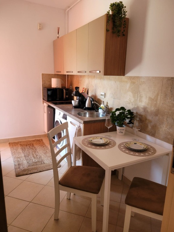 Descriere Garsoniera de vanzare in Sinaia, 1 camera, intr-un imobil P+9E. Compartimentare: Camera de zi 21,20 mp Bucatarie 6.44 mp Baie- 3,60 mp Terasa- 7.30mp Suprafata utila- 38,88 mp. Suprafata construita- 44 mp. Apartamentul este finisat cu materiale de calitate: -gresie si faianta, -parchet laminat, -ferestre din tamplarie PVC cu geam termopan, -bucataria mobilata si utilata, -usa metalica la intrare, -baie dotata cu instalatie sanitare si accesorii. -loc de parcare proprietate, acoperit Centrala termica de bloc Se vinde mobilat, dotat si utilat complet. Imprejurimi si facilitati: Zona dispune de transport in comun, magazine de alimentatie publica, scoala, spital, piata, piscina si bistro la parter, pasarela catre centrul orasului. Zona: Complex Belle View Nr. camere: 1 An constructie: 2008 Etaj: 5 din 9