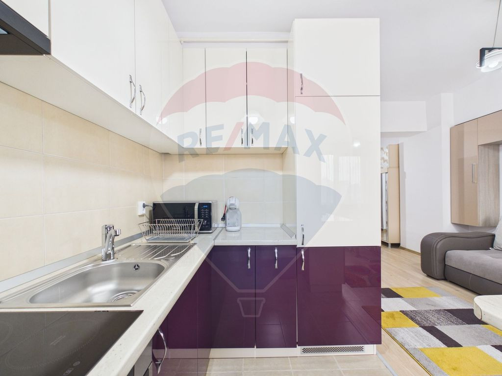 Va propun la vanzare o garsoniera situata intr-un bloc nou din Zona Alba Iulia, pe Str Matache Dobrescu. Dispusa in Complexul New City Residence, garsoniera este spatioasa, avand o suprafata totala de 38mp. Blocul este nou, mixt, dat in folosinta in 2016, cu 2 lifturi si parcare subterana. Garsoniera este complet utilata si mobilata si se vinde ca atare. In baie exista cabina de dus, masina de spalat rufe si uscator. Are 2 dresinguri spatioase atat pe hol cat si o camera dedicata depozitarii. Garsoniera este impartita in doua zone, de relaxare si una de luat masa. Aceasta fiind in fata blatului de bucatarie. Din aceasta zona se iese pe balcon. Garsoniera este potrivita atat pentru o persoana cat si pentru un cuplu. De asemenea, proprietatea poate fi o investitie foarte buna, zona fiind una dintre cele mai cautate din Bucuresti. Proprietatea detine si un loc de parcare subteran (se poate vinde separat sau impreuna cu garsoniera). Pretul lui este de 20.000 euro. Fiind pozitionata in zona Piata Alba Iulia, este foarte usor sa va conectati cu orasul si cu facilitatile acestuia: - magazine de proximitate pentru orice necesitate. - banci, farmacii, clinici medicale, policlinica Vitan si de infrumusetare. - unitati de invatamant pentru toate nivelurile de studiu (prescolar, liceal, universitar etc). - restaurante, terase, locuri de relaxare si de petrecere a timpului liber, Mall Vitan Proprietatea este forte bine conectata la mijloacele de transport in comun (Metrou-Muncii, STB-104). Se accepta credit ipotecar. Oferim consiliere financiara gratuita.