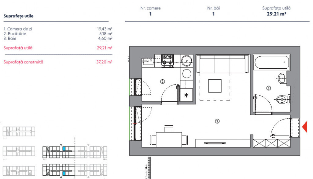 Suprafața utilă 29 m²