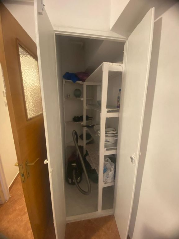 Bucătăria este complet echipată și include o debara spațioasă, ideală pentru depozitarea veselei sau a altor obiecte.