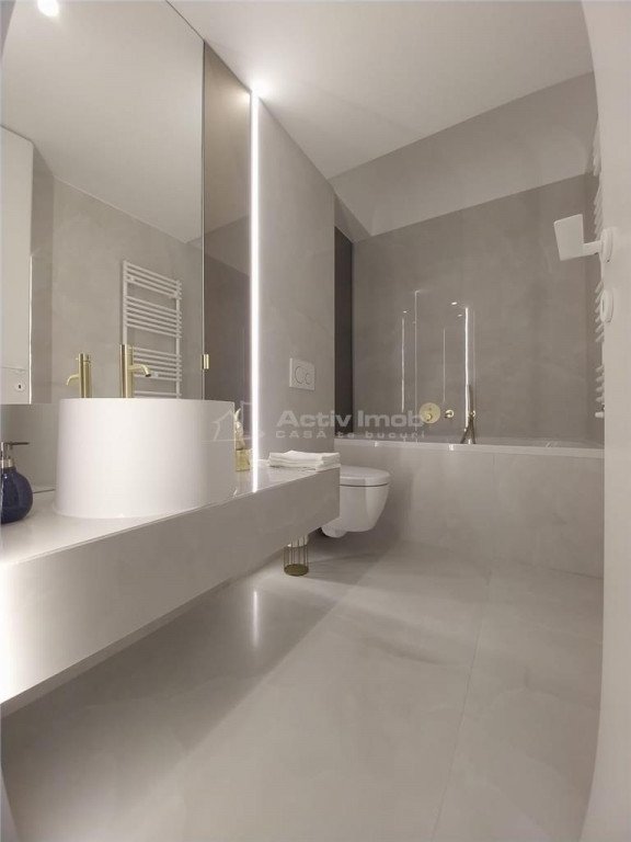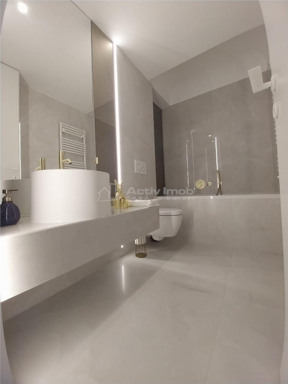 Activ Imob va propune spre inchiriere un studio cochet in complexul rezidential exclusivist CORTINA NORTH. Este situat la etajul 8, cu o suprafata utila de 42 mp, orientat spre Vest fiind astfel foarte luminos . Studioul este dotat cu centrala termica Ariston individuala cu gaz, aer conditionat tip multisplit, videointerfon, contorizat individual la gaze, curent, apa. Printre dotarile inovative ale ansamblului se numara : - tamplaria Schuco PVC cu geam tripan termoizolant - ceramica Porcelanosa - fatada ventilata - obiecte sanitare Daniel Rubinetterie; - usi interioare Filomuro cu toc ascuns Se inchiriaza mobilat si utilat complet, fiind la prima inchiriere. Plata 1 1 Apartamentul dispune de un loc de parcare situat la subteranul ansamblului. Mai multe detalii la telefon.