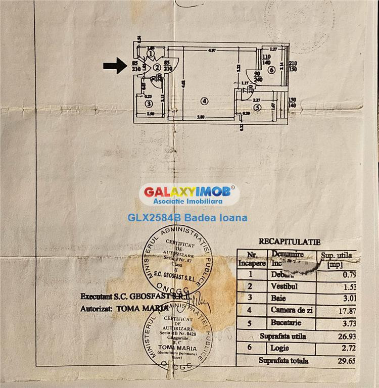 Garsoniera aflata la vanzare are o suprafata de 30mp si o compartimetare de tip semidecomandat si prezinta multiple imbunatatiri moderne, conform fotografiilor.