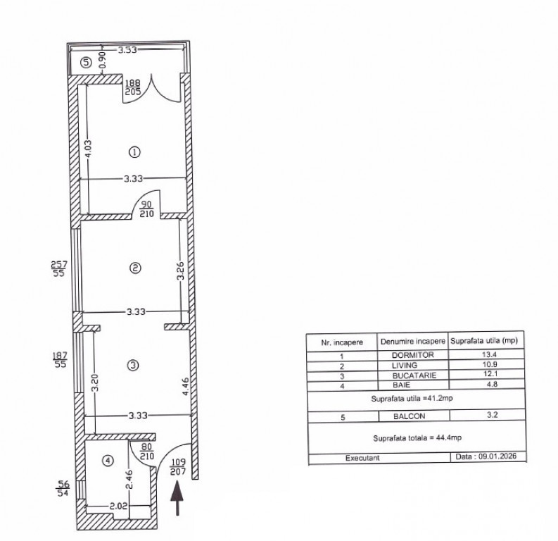 Suprafața utilă 44 m²