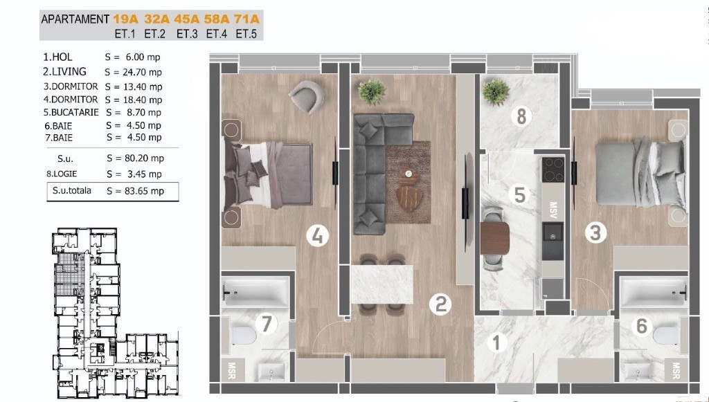3 camere | 84 m² | Bucuresti-Ilfov / Bucuresti
