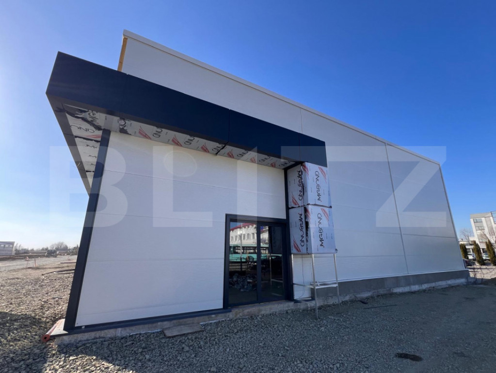Blitz vă propune spre închiriere un spațiu industrial modern cu birouri, situat în zona Aeroport. Hala are o suprafață totală de 600 mp, birouri in suprafata de 44,78 mp, ce pot fi complet personalizate și compartimentate după cerințele viitorului chiriaș – de la numărul încăperilor până la finisaje și dotări. Compartimentarea include: spațiu deschis de depozitare cu înălțime de 5,25 m la streasina si 7,25 la coama, zonă de birouri flexibilă, cameră tehnică și grup sanitar. Accesul marfă se realizează prin ușă secțională cu ușă pietonală integrată, iar dimensiunile pot fi adaptate în funcție de necesitati. Hala se află în curs de finalizare, cu termen de predare în martie, ceea ce permite personalizări ample atât la interior cât și la exterior: amplasarea birourilor, instalarea sistemelor de încălzire, climatizare, supraîncărcare electrică, zone de recepție sau orice alt tip de amenajare solicitat. Printre facilitățile standard se numără platformă betonată pentru acces și parcare, structură din panouri sandwich, fațade moderne cu placări premium și posibilitatea de a integra orice dotare necesară activității chiriașului. Spațiul este ideal pentru firme care își doresc o hală adaptată exact propriului flux de lucru. Cod ofertă / ID BLITZ: P159775 Id intern: P159775