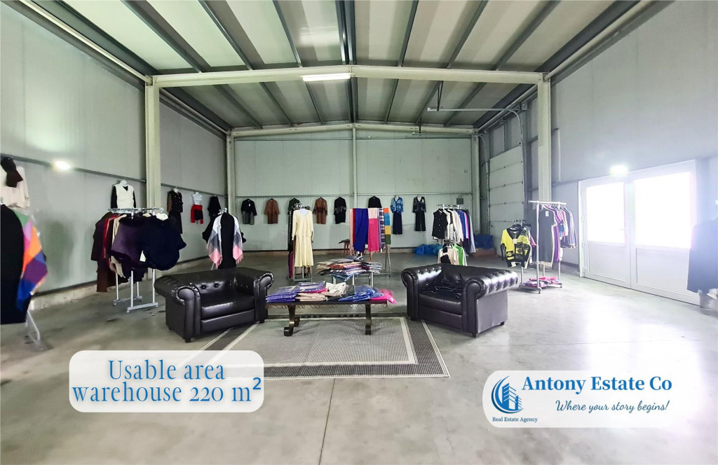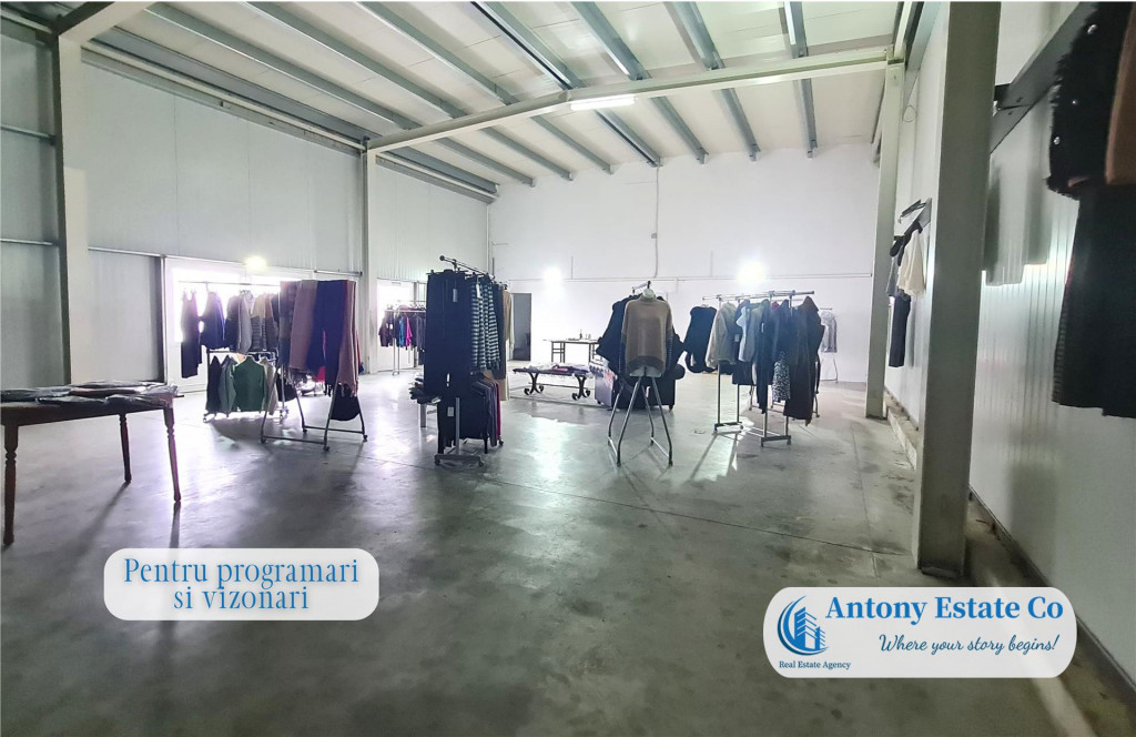 COD: FB Va propunem spre inchiriere o Hala Industriala, Depozit aflata intr-o zona de maxim interes, situata in Comuna Sanmartin, 5 KM de Oradea. Pretul chiriei este de 6 euro;/msup2; euro; - 1.200 euro;. Hala beneficiaza de o parcare de 2.000 mp. Caracteristicile imobilului: - Suprafata totala utila 220 msup2;; - 1 Zona Birouri; - 1 Sala de Mese; - 2 Grupuri Sanitare; - Poarta acces Auto in interior; La preluarea imobilului, se percepe valoarea cumulata a trei (3) chirii lunare, ca si garantie. Icirc;n apropierea acestui imobil se gasesc: Statie de autobuz, Gradinite, Scoli, Restaurante, Hoteluri, acces facil la centura orasului. Informatiile tehnice au caracter orientativ, acestea fiind preluate de la proprietar. Pentru mai multe detalii si vizionari, ne puteti contacta telefonic la numarul din anunt. Antony Estate CO - Where your story begins!