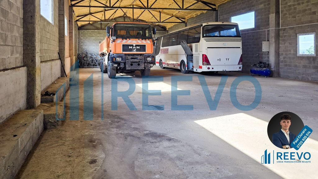 Hală de închiriat – Sat Valea Seacă, Com. Nicolae Bălcescu, Jud. Bacău Comision 0%! Hala are o suprafață generoasă de 360 mp, construită solid, din materiale de calitate, și este complet racordată la utilități. Dispune de birou separat de spațiul halei și grup sanitar propriu, oferind condiții excelente pentru desfășurarea unei game variate de activități. Terenul aferent are o suprafață de aproximativ 1000 mp, oferind spațiu amplu pentru parcare, depozitare sau amenajarea unor zone suplimentare. Proprietatea beneficiază de două căi de acces, ceea ce facilitează manevrarea autovehiculelor și organizarea fluxurilor de intrare/ieșire. Accesul se face direct din drum, iar hala dispune de poartă mare tip hală/garaj, ideală pentru accesul utilajelor sau mașinilor de tonaj. Această proprietate este ideală pentru: -depozitare marfă sau logistică, -service auto, vulcanizare sau garaj pentru utilaje, -producție ușoară (tâmplărie, confecții metalice, ateliere de mobilă etc.), -centru de distribuție sau comerț en-gros, -spațiu pentru firme de transport sau curierat, -atelier mecanic sau stație de întreținere utilaje agricole, -centru de ambalare și procesare produse, -showroom cu depozit integrat. Utilități: curent electric 380V, apă de la rețea, canalizare și gaz. Localizare: Hala se află în Sat Valea Seacă, Com. Nicolae Bălcescu, la doar 9 km de orașul Bacău și 5 km de accesul pe autostradă, într-o zonă liniștită, dar ușor accesibilă. ???? Pentru mai multe detalii sau pentru a programa o vizionare, contactează-mă! ???? Pentru poze suplimentare, accesează site-ul reevo.ro Paul Ciuraru – Consultant Imobiliar REEVO