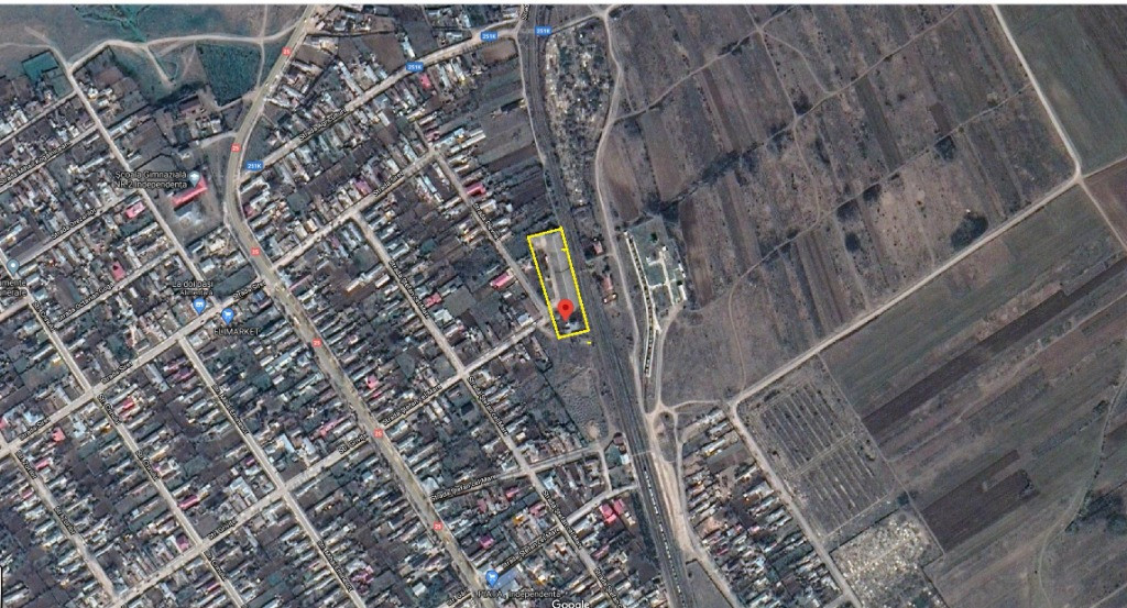 Hala in suprafata de 2632 mp (25/104m), in Independenta (zona Garii), construita pe o structura din cadre de beton si caramizi. Terenul aferent constructiei este in suprafata de 5000 mp. Imobilul are deschidere la drum asfaltat si la calea ferata. Proprietatea este racordata la: curent electric (220v si 380v), apa, gaze si canalizare. Se accepta orice forma de creditare.