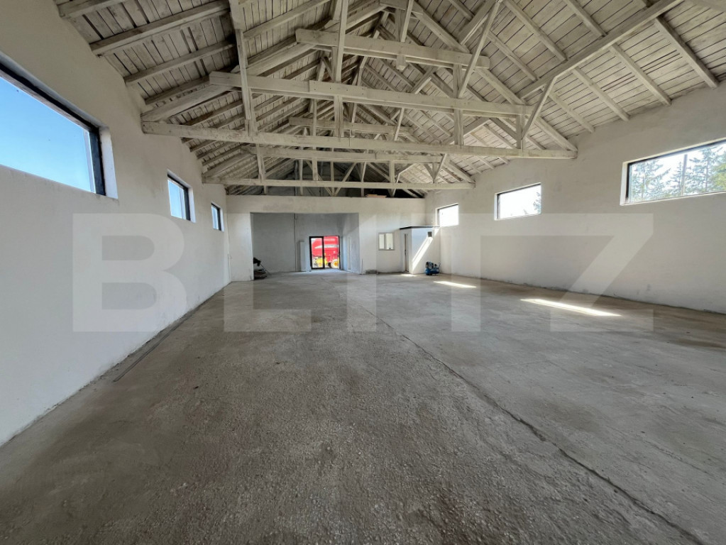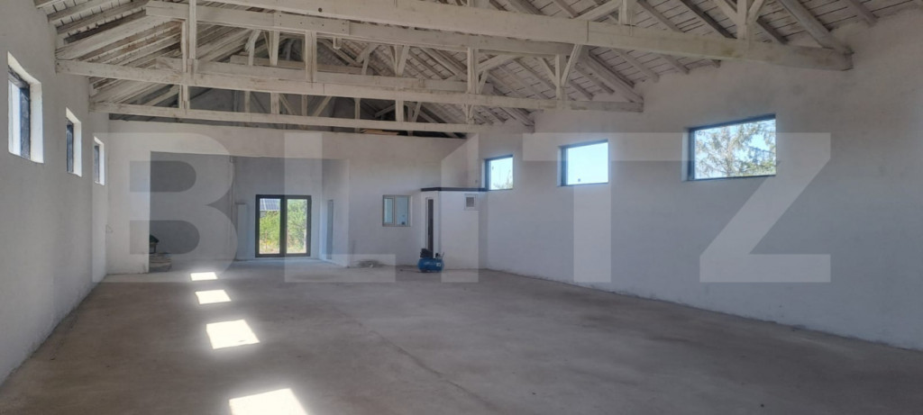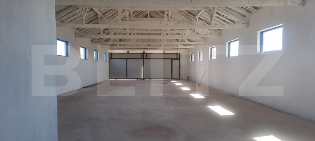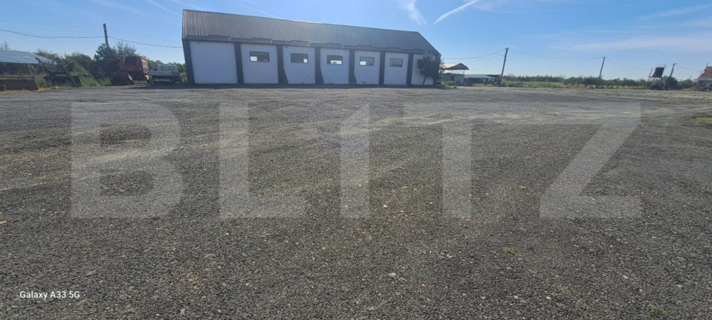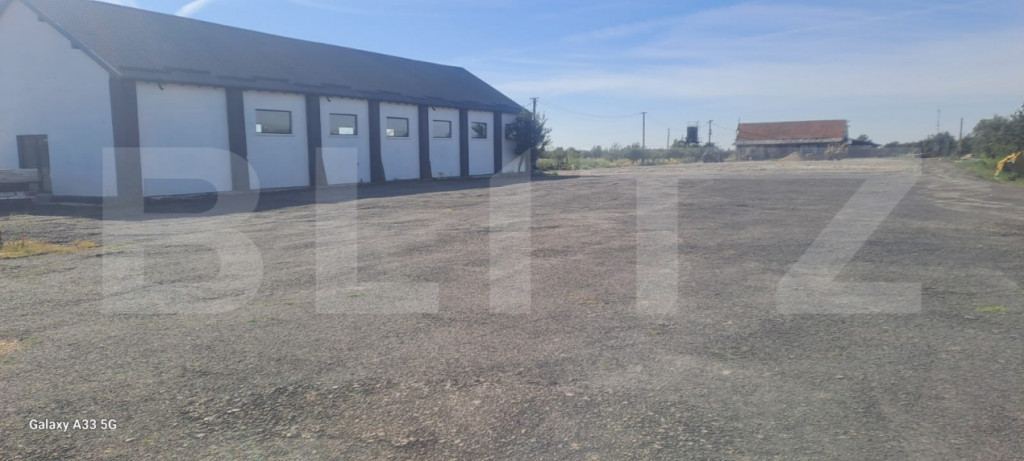Oferim spre închiriere hală industrială cu suprafața de 370 mp, situată pe DN72 – Suta Seaca, într-o zonă cu acces rapid și vizibilitate foarte bună. Proprietatea include un teren generos de aproximativ 10.000 mp, din care 5.000 mp sunt direct utilizabili în jurul halei – ideal pentru circulația sau parcarea camioanelor, depozitare exterioară sau extindere activitate. Caracteristici hală: Construcție solidă din cărămidă, recent renovată Acoperiș nou din țiglă metalică Uși și ferestre termopan pentru eficiență termică Grup sanitar inclus Alimentare trifazică – curent 380V Rampă betonată pentru descărcare camioane / TIR-uri Macara exterioară + macara fixă de 8 t pe lanț – perfectă pentru manipularea încărcăturilor grele Sistem de supraveghere video Curte închisă, securizată, cu acces auto de mare tonaj Teren exterior: Aproximativ 10.000 mp, cu 5.000 mp utilizabili direct Spațiu suficient pentru manevre camioane, containere, stocare materiale Servicii opționale (contra cost): Manipulare marfă cu stivuitor și încărcător frontal disponibile la cerere Bonus – disponibilitate extinsă: Posibilitate închiriere suplimentară a unei a doua hale de 300 mp aflate pe aceeași proprietate Ideal pentru: activități de producție, logistică, depozitare, service utilaje grele, stație betoane, parc auto etc. Disponibil imediat | Acces facil | Condiții flexibile de închiriere! Cod ofertă / ID BLITZ: P149738 Id intern: P149738