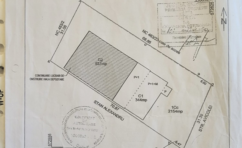 Hala industriala 600 mp, teren parcare 400 mp, de inchiriat,